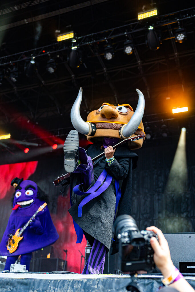 Then came Mac Sabbath, equal parts comedy act and surprisingly tight metal band. Watching them parody Sabbath classics with food-themed lyrics while dressed as demented McDonald’s characters was exactly the kind of weird that Riot Fest thrives on.