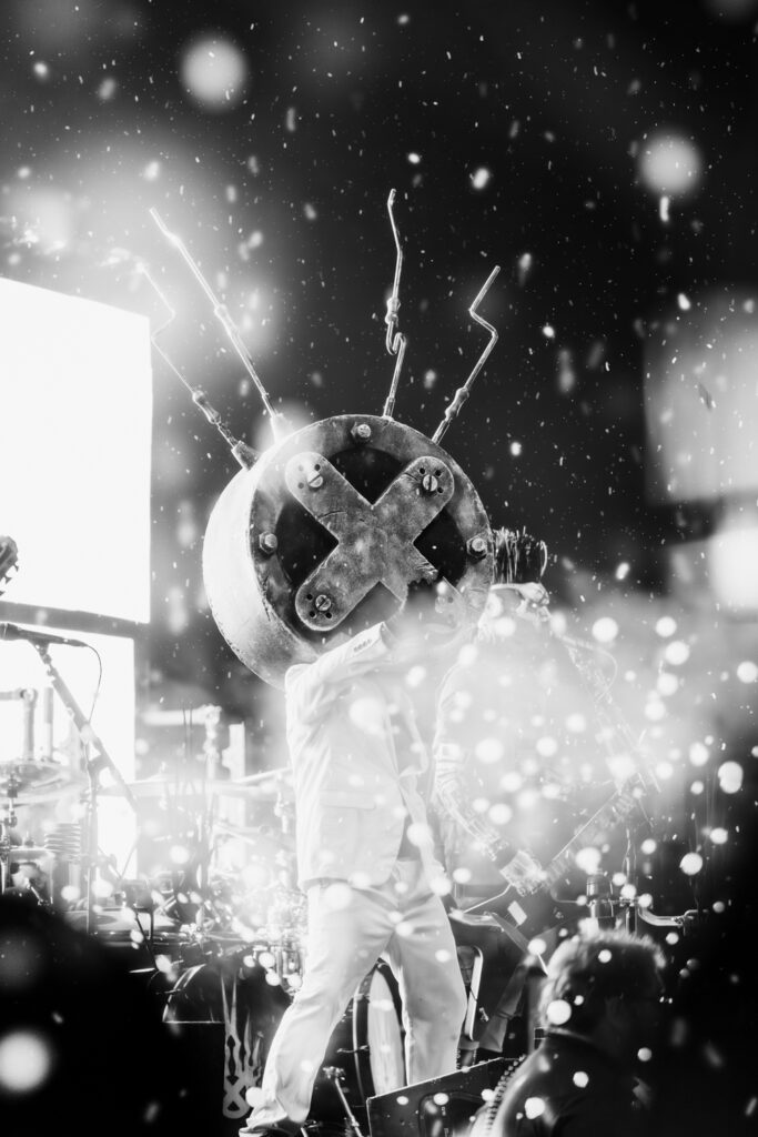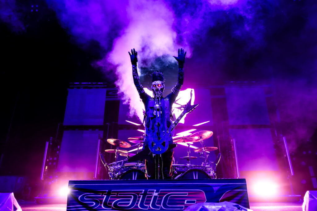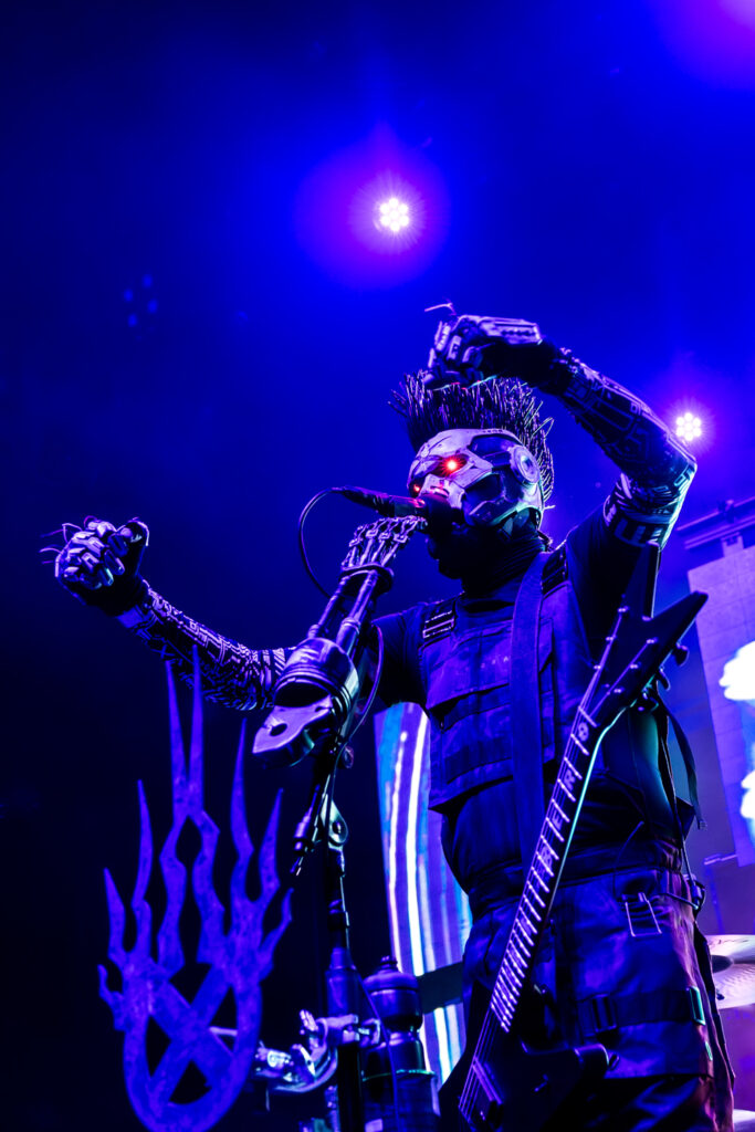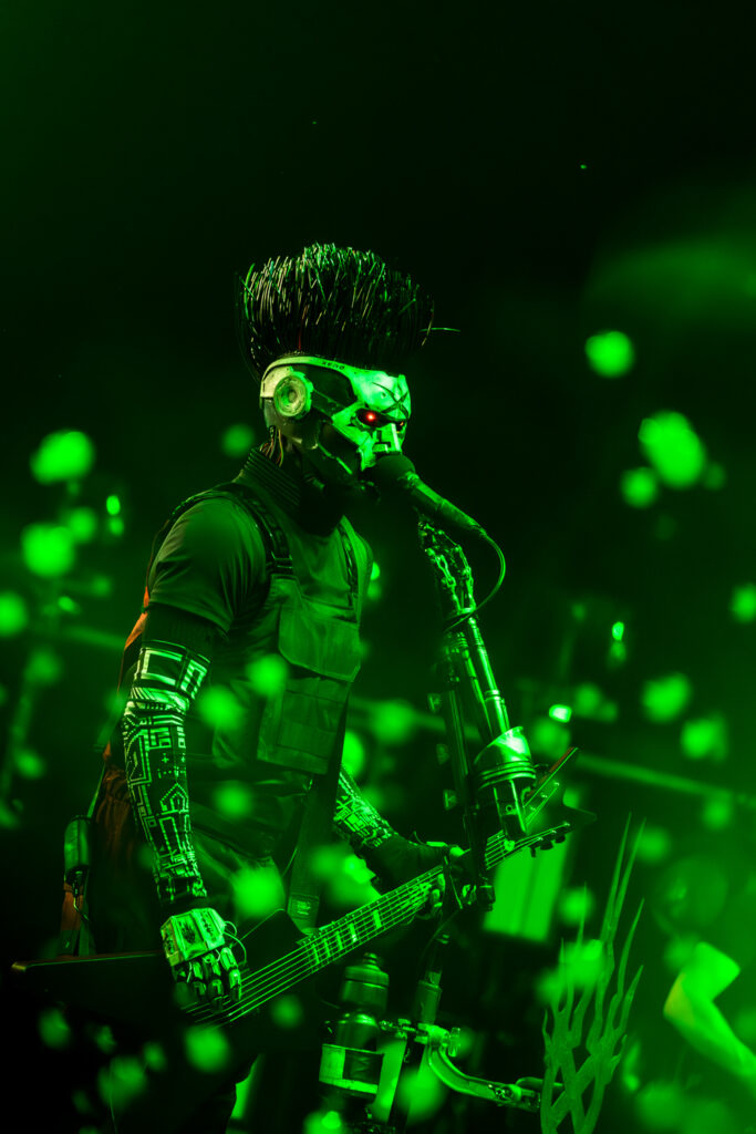 Next up was Static-X, the industrial metal legends who’ve been fueling chaos since the late ‘90s. Formed in Los Angeles back in 1994 by the late Wayne Static, the band built a massive cult following with their fusion of metal and industrial grooves…and it’s so rad to see how they’ve managed to keep that legacy alive after all these years. As the lights dropped, the room went silent for half a second… and then absolute madness erupted yet again. The second Static-X hit the stage, the crowd lost their minds. I noticed right away how many die-hard fans were packed in there…people were READY. Within moments, we were hit with a full sensory overload: bursts of fog, glowing colors, and even fake snow drifting through the air. It was chaotic, heavy, and totally hypnotic. I love that they’ve stayed true to Wayne’s vision…keeping his iconic masked presence alive through Edsel Dope, who somehow manages to make it feel authentic without ever crossing into “cover band” territory. Having the original members still going strong just adds to the magic; it feels like Static-X has never lost its soul. They ripped through classics like “Bled for Days,” “Love Dump,” “Black and White,” and “Dirt House,” before closing out with the ultimate crowd favorite, “Push It.” The energy was unreal yall…crowd surfers flying everywhere, fans screaming every lyric, fog blasting through the lights. Between the snow, the smoke, the giant robot, and that insane monster prop that joined the stage, it was pure sensory chaos in the best way. Their performance was top tier. I’m still sitting here with my jaw on the floor thinking about it.