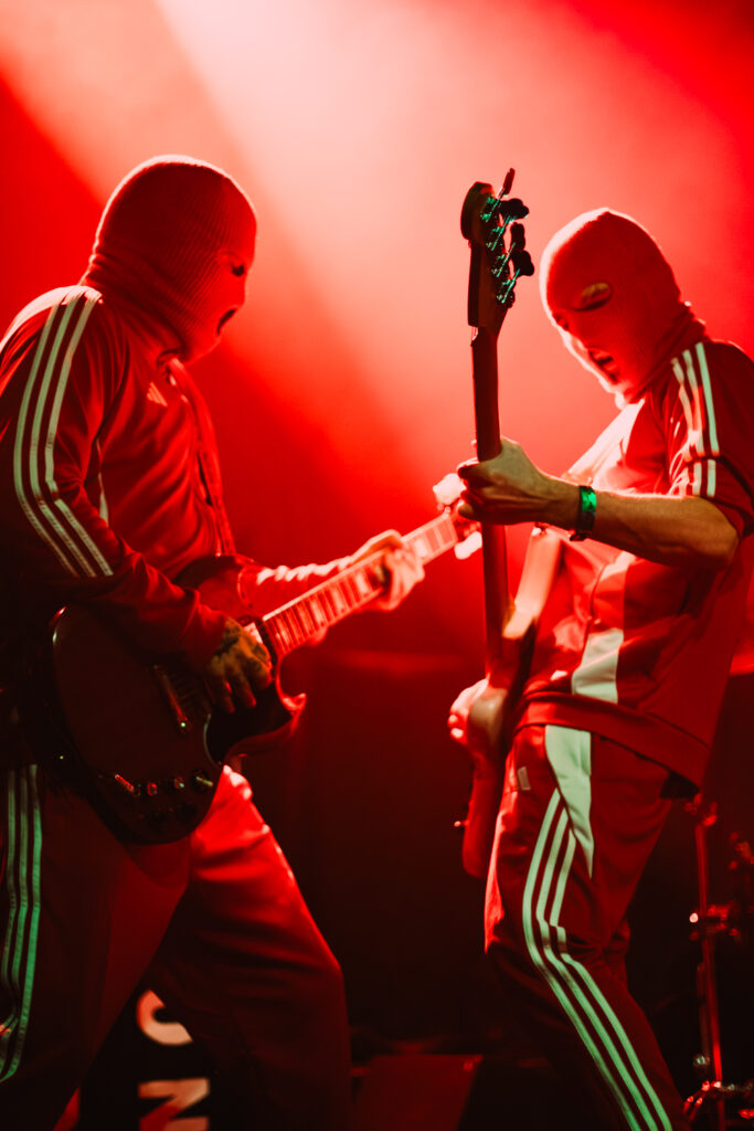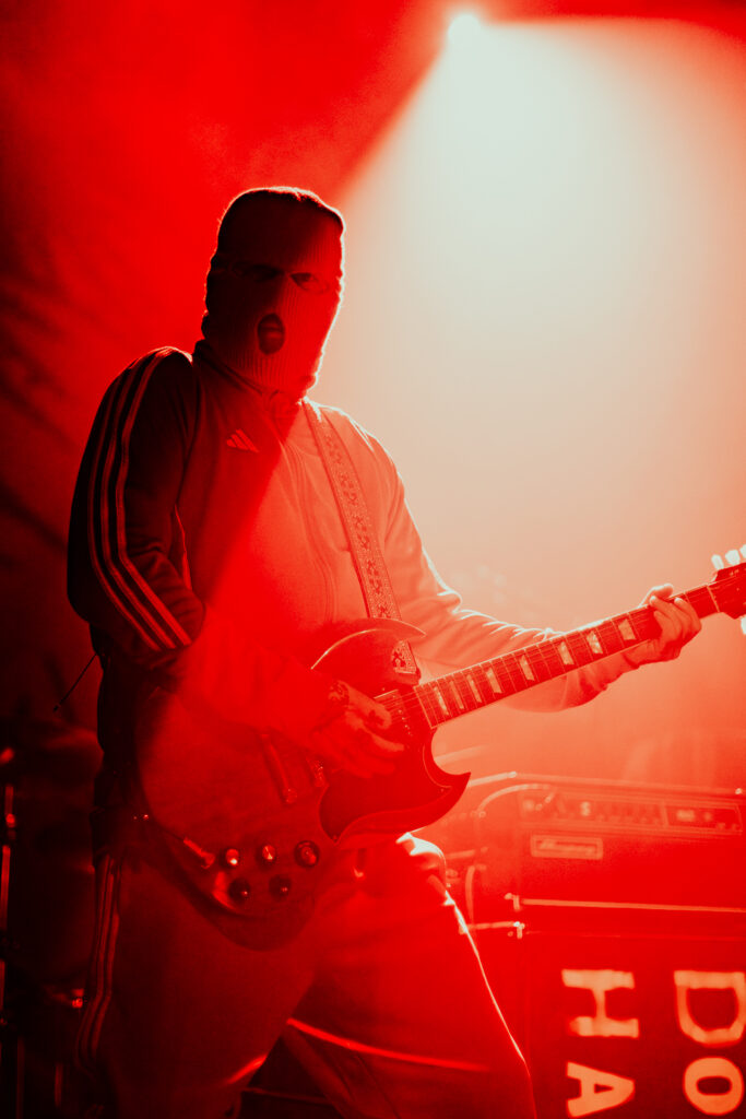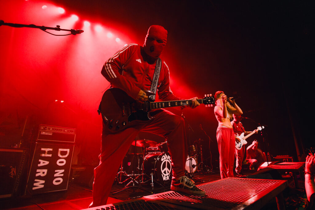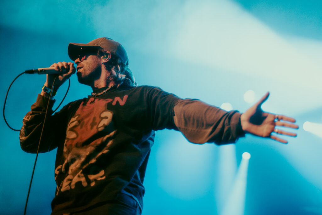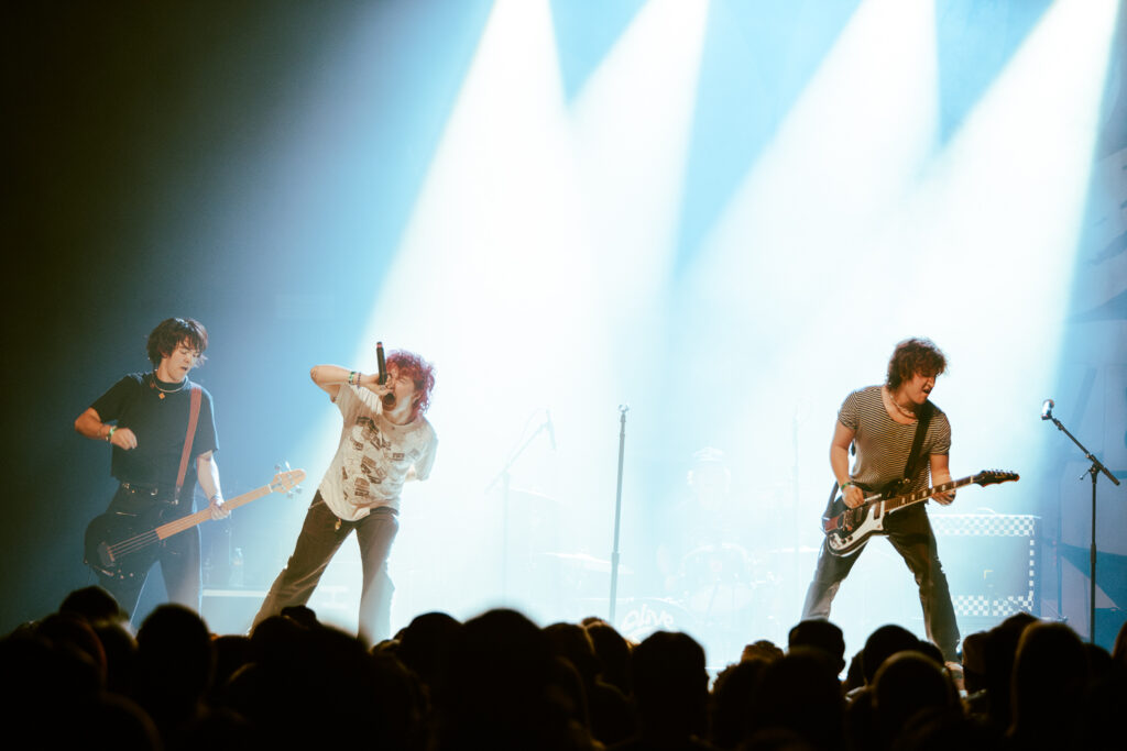 Los Angeles native rock band Point North took the stage. Singer Jon Lundin, guitarist and vocalist Andy Hershey, and drummer Josh Parra make up the three-piece. The heaviest band on the lineup, they were bathed in dark green and blue mood lighting to accentuate the atmosphere during their set. Lundin gave off calm and collected energy with his hat, sunglasses, and stunning vocals, while Hershey supplied the screams. Their latest release, “DEAD 2 ME,” got the mosh pit going, and it continued throughout the set. Another highlight was 2024 single “Bring Me Down,” with a catchy chorus that’s easy to get into. Point North has a more established fanbase than the other openers, and their fans in the audience sang along to one of their most popular songs, “Safe and Sound,” to finish off the set.