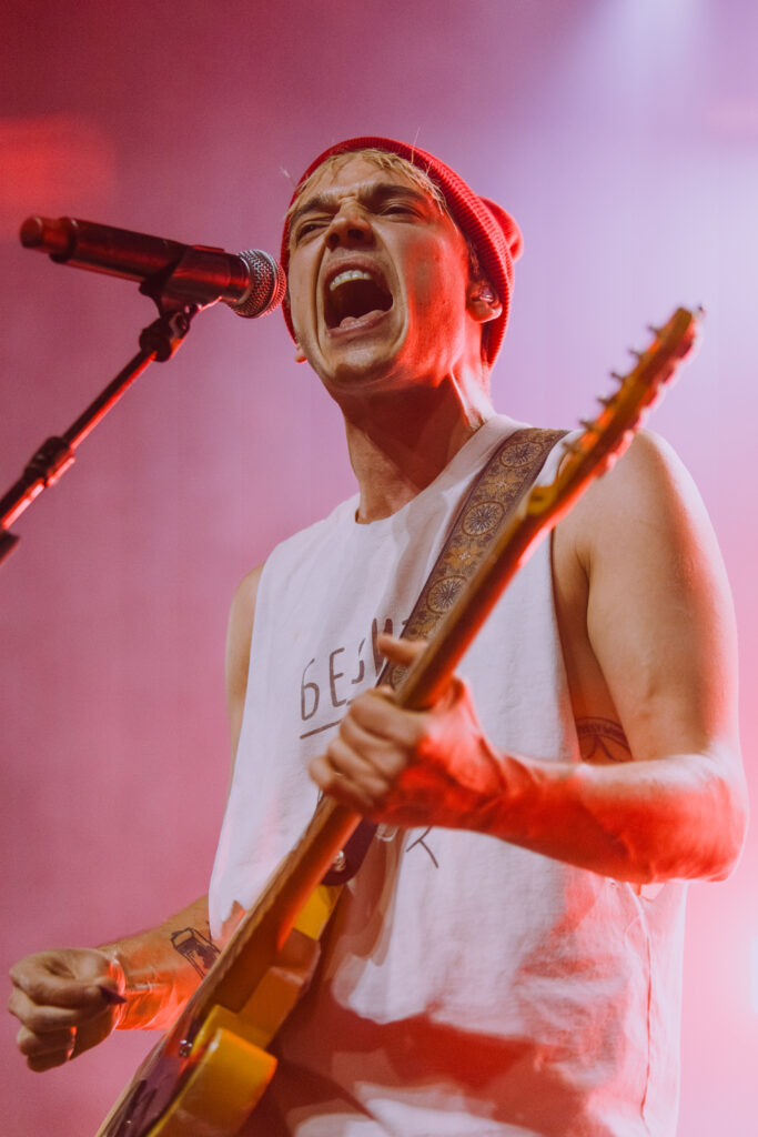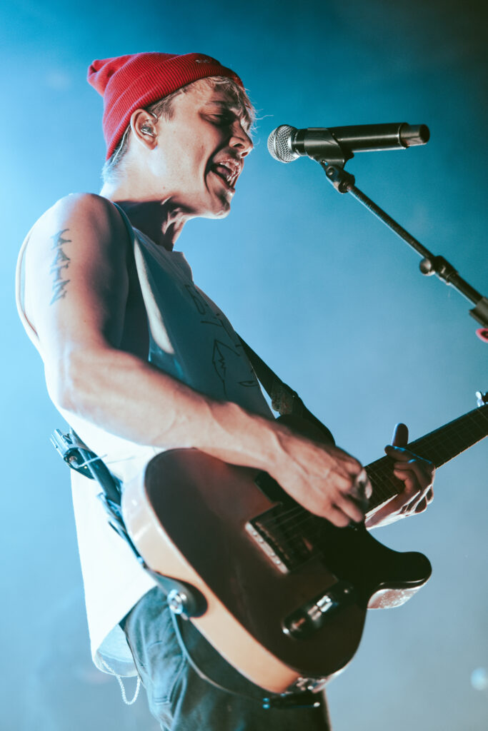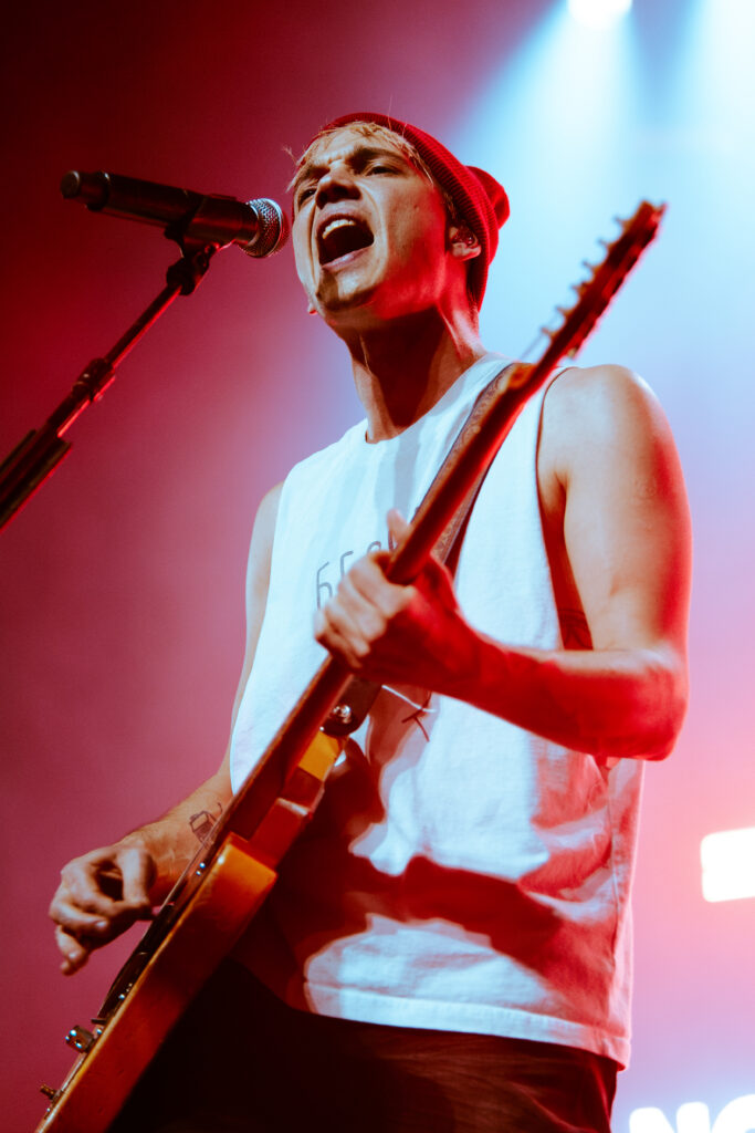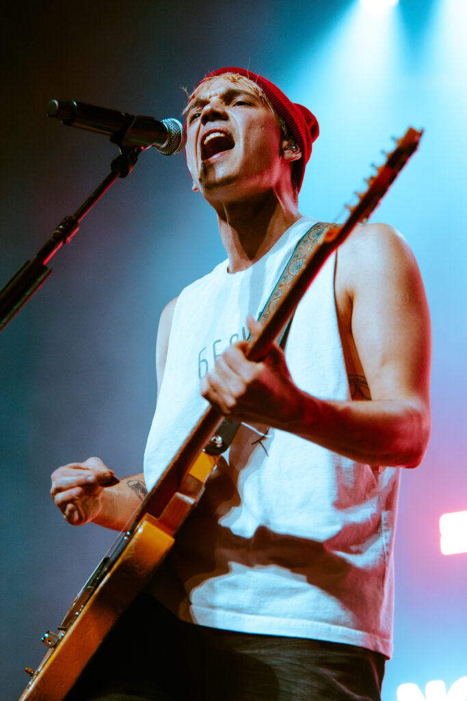 Next up was Olive Vox, an alt-rock band from Dallas, Texas. With brothers Parker James and Caden Shea on vocals and guitar, Ben Reid on bass, and Dayton Phillips on the drums, these guys knew what they were doing. Openers have to be interesting and engage the audience because most of them are completely unknown to the crowd. I was unfamiliar with this band before, but now I would go see them headline a show in a heartbeat. Right off the bat, they had crazy energy, with Reid constantly jumping as high as possible off the risers and James passionately screaming into the mic. They’re young, but they gave the impression that they’re seasoned entertainers that understand how to give you a good time. You don’t have to know their music to get into it, and the crowd did just that. Everyone was a fan, and this band is definitely one to watch.