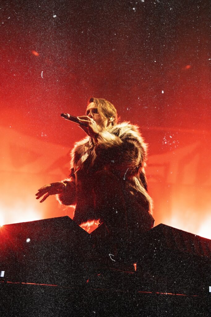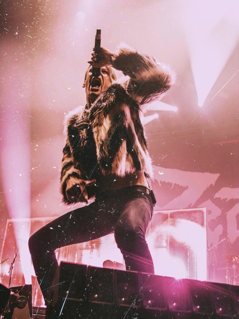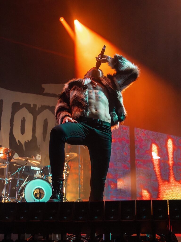 From the second Caleb Shomo stepped out in his giant fur coat, the room was locked in. It was one of those visual choices that could have easily felt tongue-in-cheek, but on him, under the lights and in front of that massive crowd, it somehow just worked. He made an immediate statement without distracting from what actually mattered — which was the intense energy. Crowdsurfers started early and didn’t seem to stop throughout the entire set. The floor was also in constant motion with singalongs and circle pits instantly erupting. Even from the first few songs alone, it was obvious that this wasn’t a crowd politely waiting for the headliner — they were there for Beartooth, too.