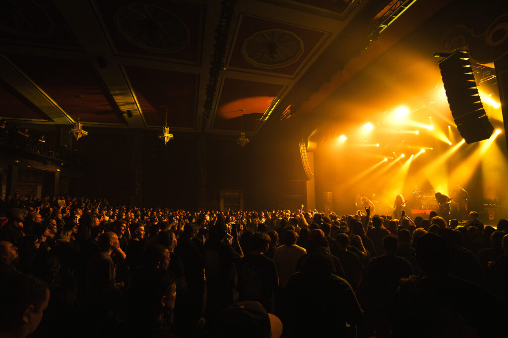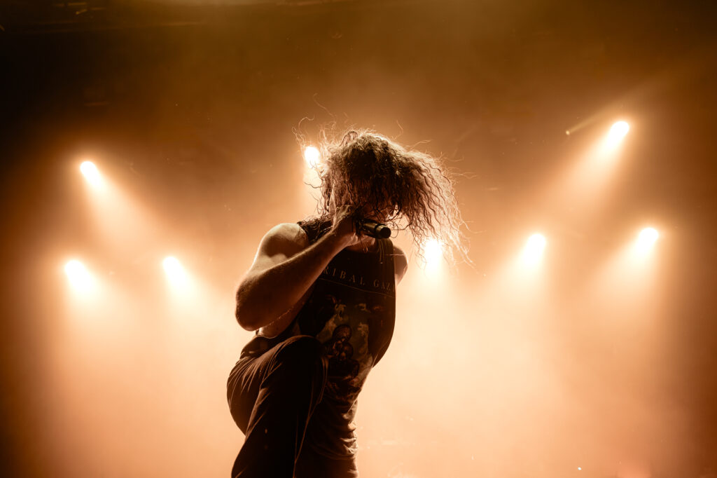 As intense as the show had been so far, it only got more chaotic as Aborted came onstage. Pioneers of their genre, Aborted unleashed a wave of punishing and technical guitar riffs and solos at break neck speeds. Vocalist and sole original member Sven de Caluwé is a spectacle of a frontman onstage, violently headbanging and throwing punches and kicks in the air, while simultaneously delivering ferocious vocals at the same high speeds as the instrumentals. After playing an absolutely chaotic set, they close out their time with blasting the electric dance song “Sandstorm” by Darude, accompanied by a colorful light display. Sven invites to crowd to party with him one last time, and the once hectic mosh pit turns into a dance floor as the crowd jumps along to the song. After a min, Aborted thanks the crowd and make their way offstage, leaving the crowd reinvigorated for the main act.