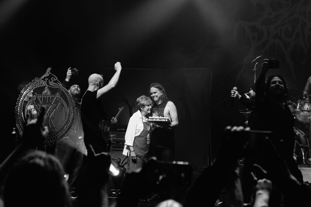 A little more than halfway through the album play through, there was a sudden halt to the show. As it turned out, alongside celebrating that this was a hometown show, it was also Travis Ryan’s birthday, and the band set up a surprise for him as his mother came out onstage with a birthday cake. The crowd proceeded to loudly sing Happy Birthday to Travis and he blow out his candles. After a round of hugs from friends and family, he thanked the crowd and made a joking comment about the title of the next song on the track list, “With All Disrespect.” They soon wrapped up the full album play through, concluding with the title track, “Death Atlas,” and stood triumphantly onstage as the crowd cheered on. They finished the nights performance with three more songs, all from their most recent album, Terrasite.