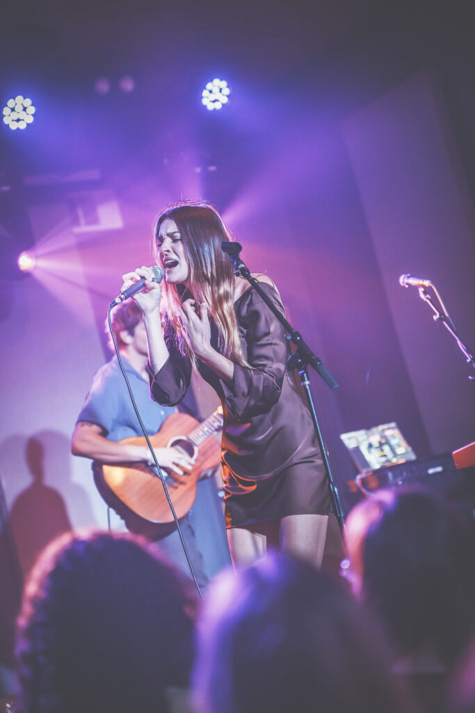 Aisle 5 was the perfect room for what became a night of connection, fun banter, and unforgettable music. The combination of dim lights, low ceilings, and no bad sightlines created the ideal backdrop for Lawrence’s blend of bite and vulnerability. Her music, often walking that tightrope between razor-sharp pop and confessional lyricism, hit harder when delivered eye-to-eye, just a few feet from the crowd.