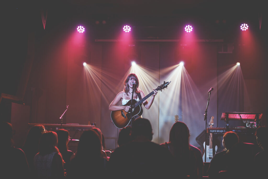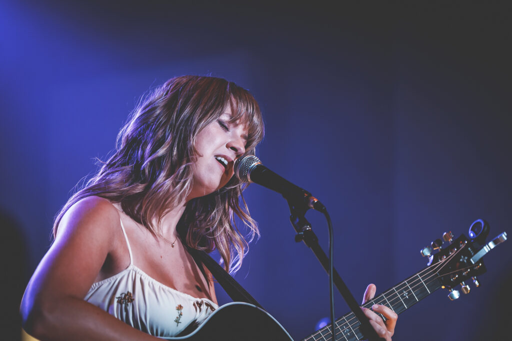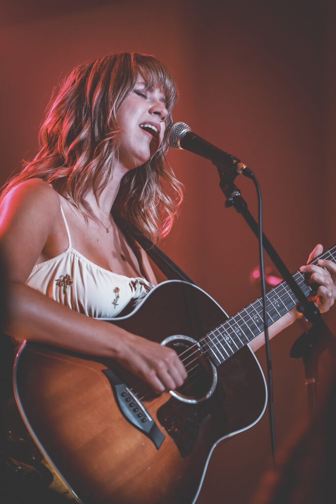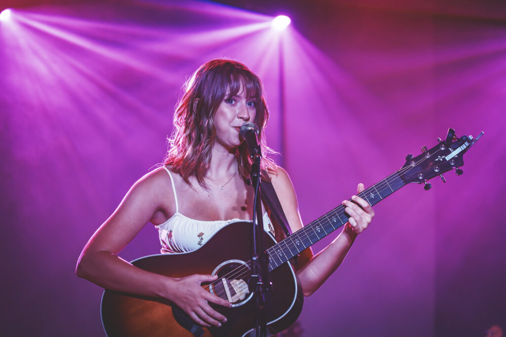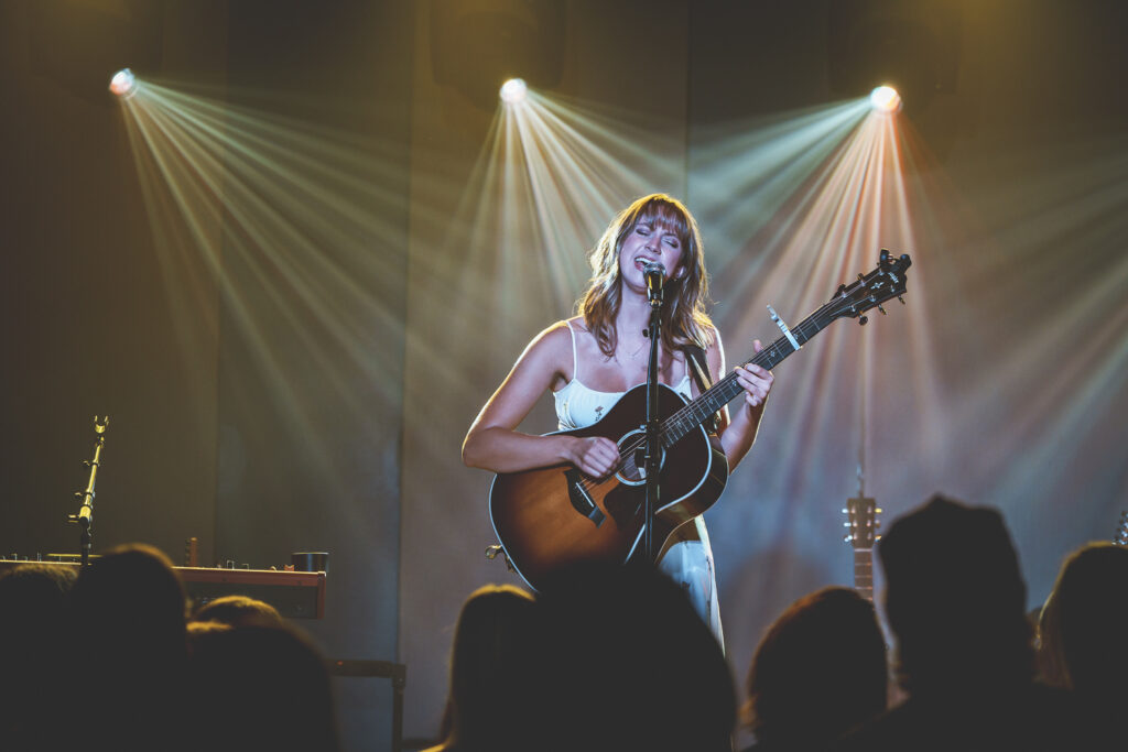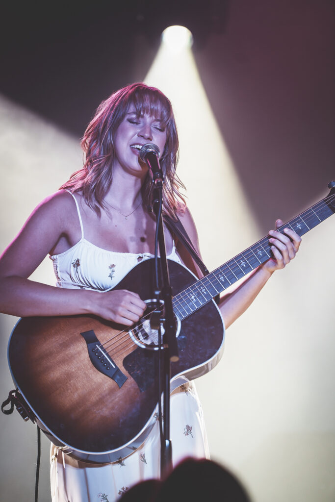 The night opened with Indiana’s own Taylor Bickett, who has been riding the wave of her viral 2022 single “Quarter Life Crisis”. Onstage with just a guitar and a smile, she leaned into her gift for pulling the audience in with lyrics full of humor and heartbreak. Songs about growing up and the awkward messiness of adulthood struck a chord with the audience. Each lyric felt as though she was looking straight into our souls, relating to each and every person listening.
