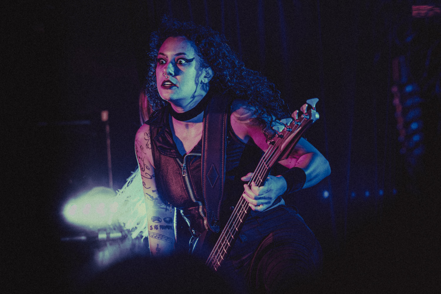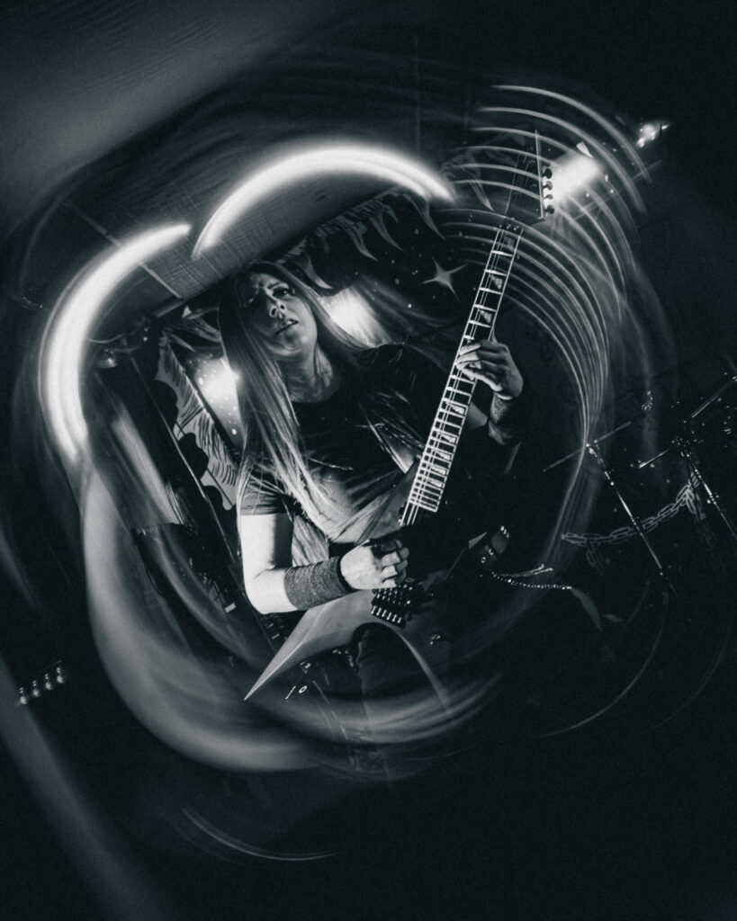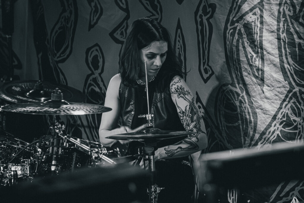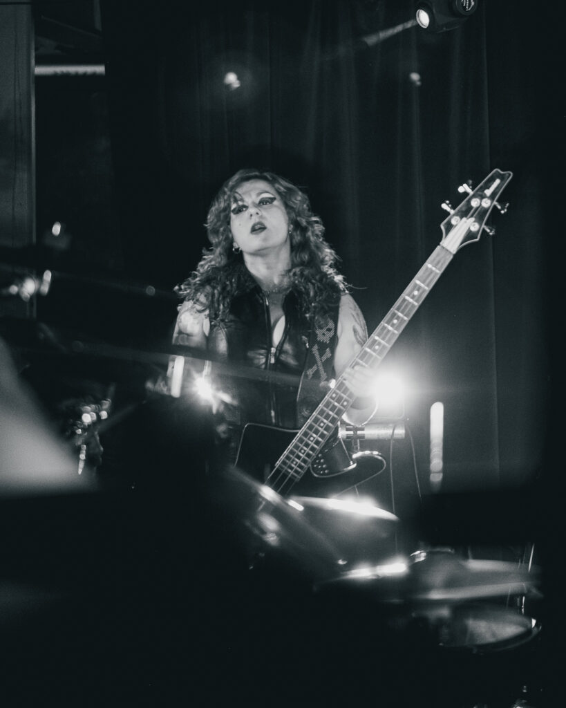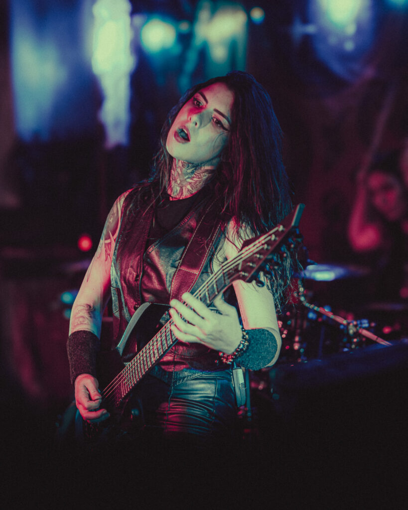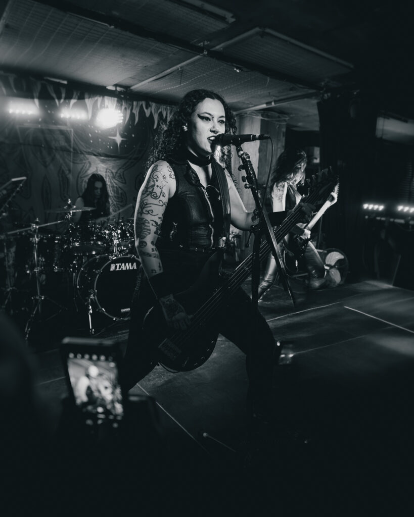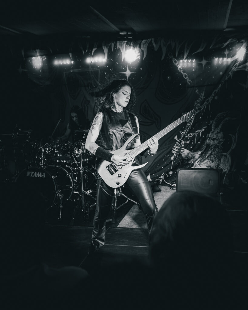 Around 9:45, the lights went out and Luana, the drummer, walked in and sat at the kit to loud cheers from the sold-out crowd. “Crypta! Crypta! Crypta!” blasted through the neon-filled walls as Fernanda, the frontwoman, and Taina on guitar walked in with fists in the air. If I had to describe Fernanda in a few words, it would be a force of nature. As the riffs of “Aftermath” kicked off their set, it was clear why this band is breaking through the metal scene. They are on another level. The band didn’t just want to play a good show — they demanded energy from every single person in the room. Fernanda kept the crowd hyped non-stop until the floor was shaking. Power stanced as she delivered the piercing vocals of The Other Side of Anger. She would lock eyes with someone in the crowd, drawing you in, holding your attention for a few seconds, before moving on to the next person— a bit of an odd comparison, but like Liam Gallagher in the way she commands attention with a single gesture to the crowd.