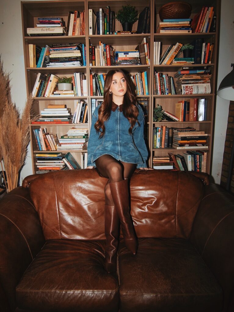 When Rachel mentioned Kelly Clarkson as a major influence, it made immediate sense. There’s a similar kind of vocal presence and emotional clarity that shines through both. However, even more so, is the way Rachel carries herself: confident without feeling the need to abide by the ever-changing industry trends. The current climate can easily sweep younger artists into a place that isn’t really who they are — something that we all observed with Kelly Clarkson in her early career — as she never strayed from her roots to compete with the likes of Britney, Christina and other heavily curated female pop artists of the same era. There is a shared portrayal of the “Miss Independent” aesthetic between the two, which highlights Rachel in a classy and empowering light, all while remaining true to herself. Rachel further lit up when dishing on her other big ballad favorites like Adele, Sam Smith, Bruno Mars, and Demi Lovato — artists who all embody that same empowering liberation. There’s a clear throughline there along with a little pinch of fresh, as Rachel also pulls inspiration from newer artists like Olivia Dean and Tate McRae.