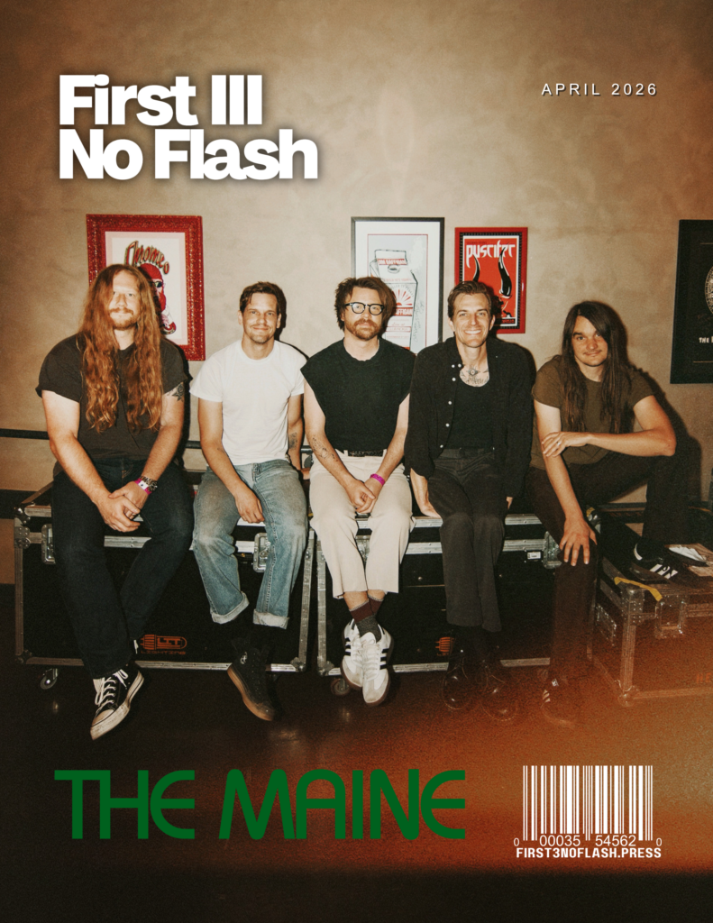 Ahead of their Los Angeles show last month, First III No Flash caught up with The Maine for their electric performance downtown at The Novo. We later chatted with bassist Garrett Nickelsen about growth, perspective, longevity, and the band’s tenth studio album, Joy Next Door.
