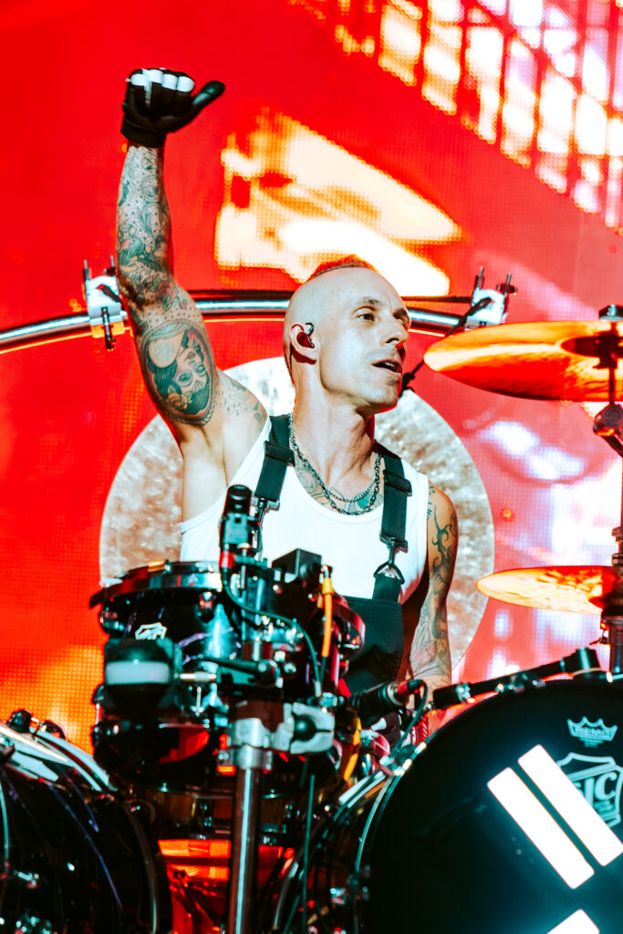 They went on to play an incredibly energetic set of hits, including several outfit changes and more confetti and streamers. Zummo did his big drum solo, and afterwards the group popped up in the middle of the pit to perform “Fuckboi” acoustically. Everyone in the arena put their phone lights up for their cover of Cascada’s club classic “Everytime We Touch,” which they finished with a wall of death after walking through the crowd back to the stage.