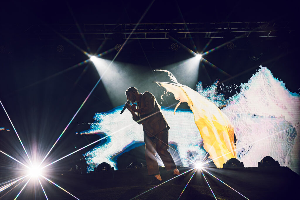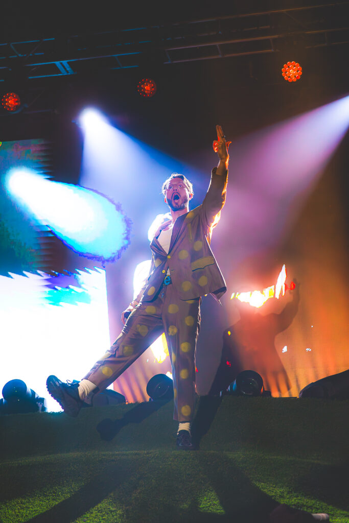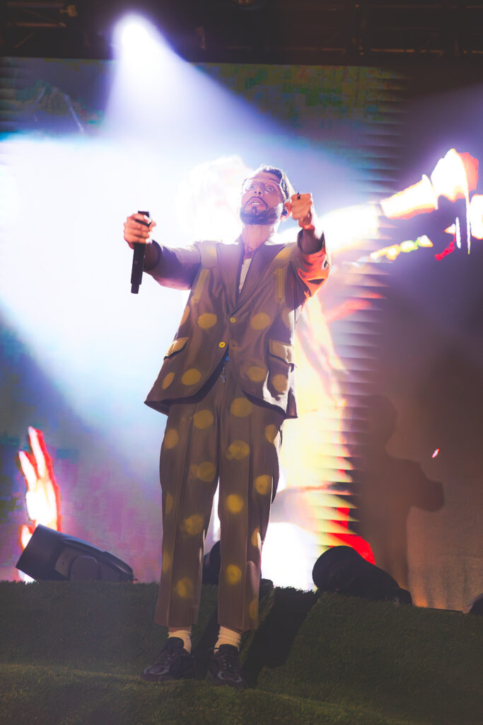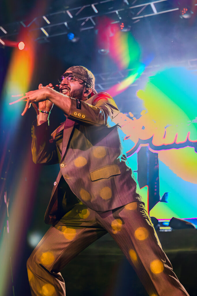 Canadian rapper, singer, and songwriter bbno$ is widely known for his unique online presence, consisting of elaborate cosplays and producing TikTok trending sounds. His songs feature catchy, humorous lyrics and highly danceable beats. With a genre-blending style and playful persona, he has garnered over nine million followers on TikTok. His rise to fame online creates the perfect context for his virtual-themed tour. His live shows feel as though you plucked this internet culture phenomenon off the screen and dropped him on stage, and this sold-out show in Charlotte, NC, was no exception.