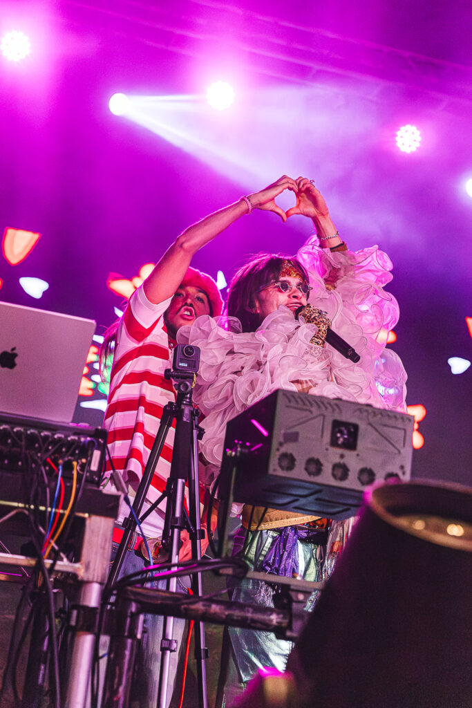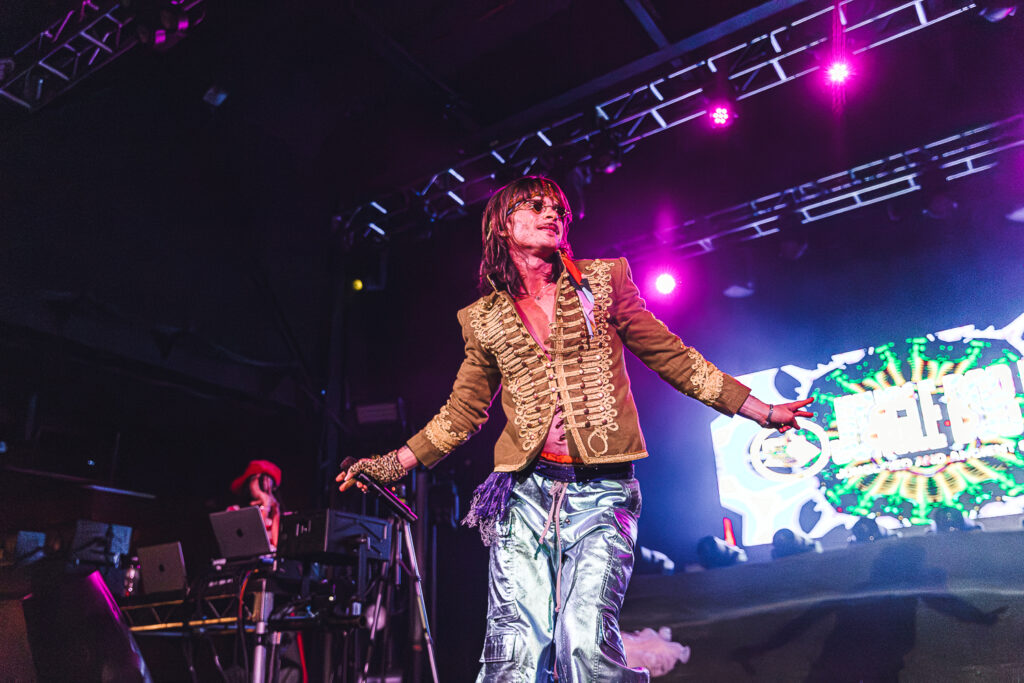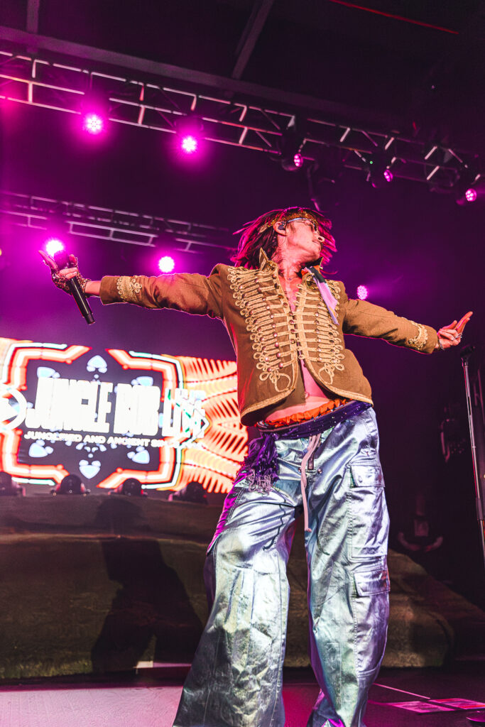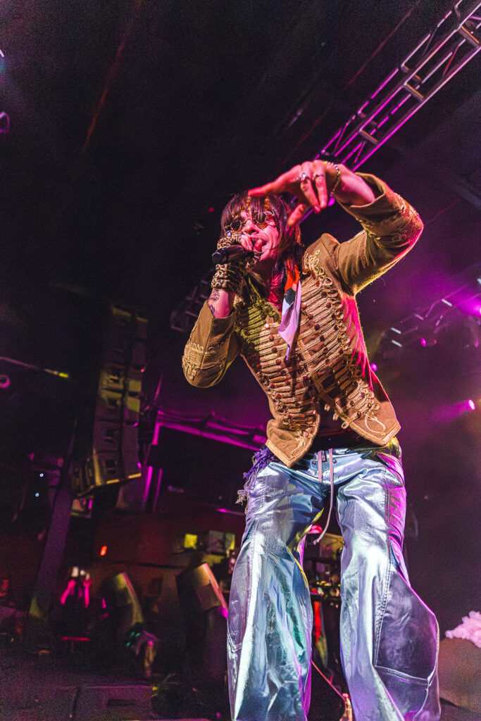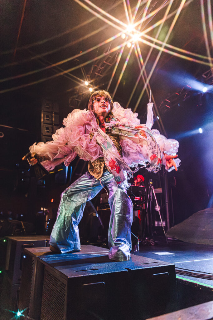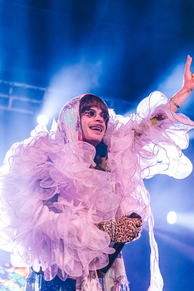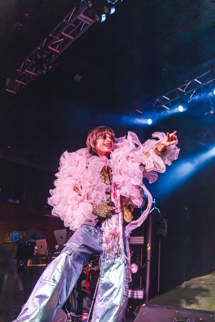 The night started with a self-proclaimed “love crusader” and dance-pop artist, Jungle Bobby. Wearing an eccentric layering of organza and holographic pants, Jungle Bobby brought both whimsy and high energy. He often had the crowd repeat the chant “I’m safe at a bbno$ show”, establishing that the mood for the night was to prioritize fun, happiness, and safety.