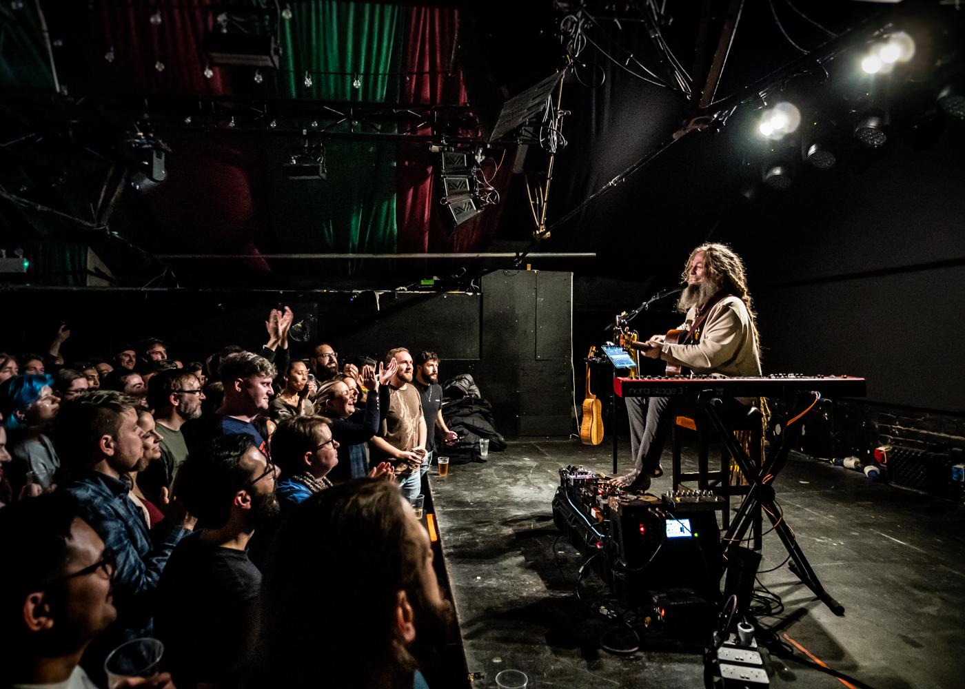 The evening opened with a performance by Roaman (born Riccardo Vitalone), an Italian singer and songwriter from Rome. He set a relaxed tone with some jokes and chilled acoustic songs. He played without a setlist, choosing songs spontaneously, and included a singalong cover of The Black Eyed Peas’ “Where Is the Love?”. After briefly losing his guitar in Lisbon and borrowing instruments from friends for several shows, Roaman was happy to be reunited with his own guitar in Dublin. Like Mike Love, this was also his first time performing in Ireland.
