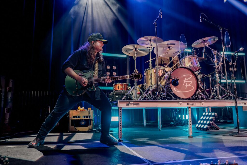 The Fremont Theater stage is set for Priscilla Block with small high rise stage for the drummer and bass players to be set up on along with some block lighting structures in the back then open stage area for the guitar players and Priscilla to roam around. Back in 2024 when Priscilla Block was here last time, it was a high energy and party mode this time around to fit the new songs it was more of an intimate show with storytelling to the new tracks. There were also a few previous hits fans knew of along with covers. The first three songs of the night were “Things You Didn’t See,” “Try” and “My Bar.” After a few tracks, Priscilla sat down on the stage steps and did a talented stripped-down cover of “Birds Of a Feather” by Billie Eilish. Then she played her most recent hit you’ve heard on the radio “Couldn’t Care Less.”