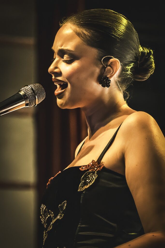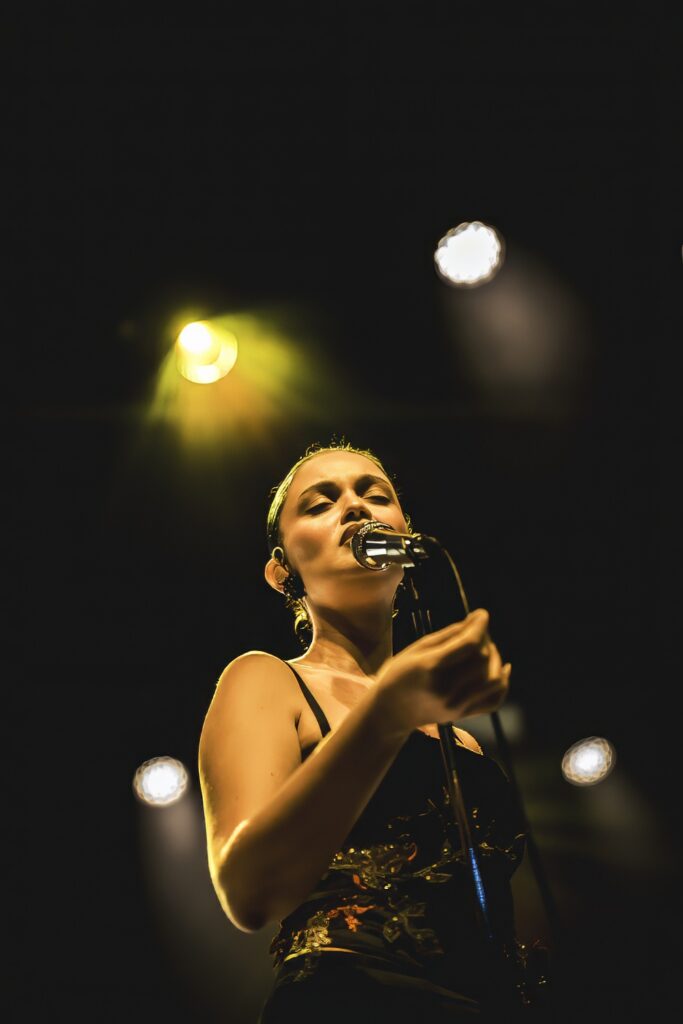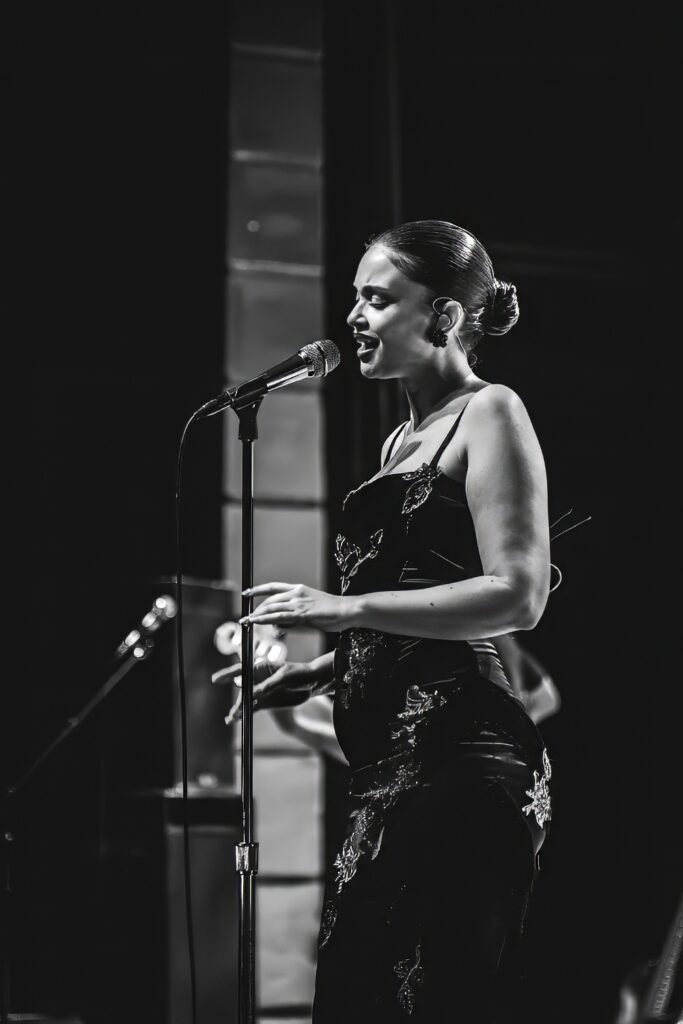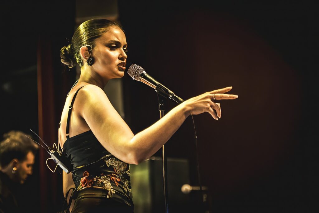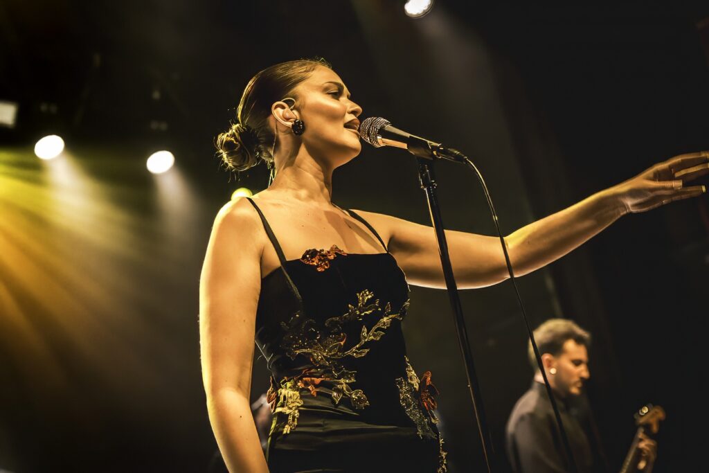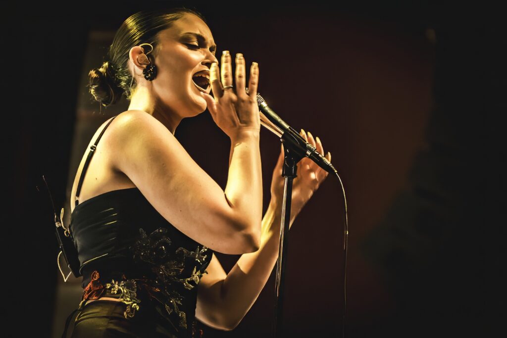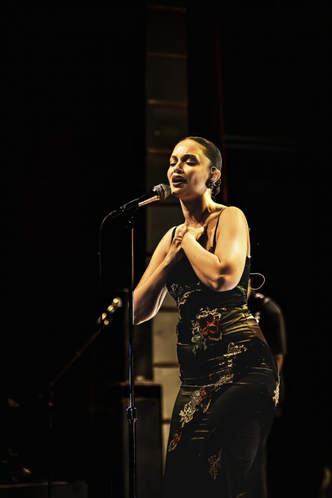 Fans filled the room early, and by the time the lights dimmed, the crowd had settled into a quiet anticipation different from the usual Friday night buzz. The stage gave off the feeling of a speakeasy known only to a few, the kind that required a password for entrance. When Claudio stepped onstage, the energy shifted into something calm yet energetic. Backed by her soulful, jazz-infused band, Sabrina started the night with “One Word” from her 2025 album Fall In Love With Her. She followed that with “Before It’s Too Late,” “Memory Foam,” and the title track, “Fall In Love With Her.”