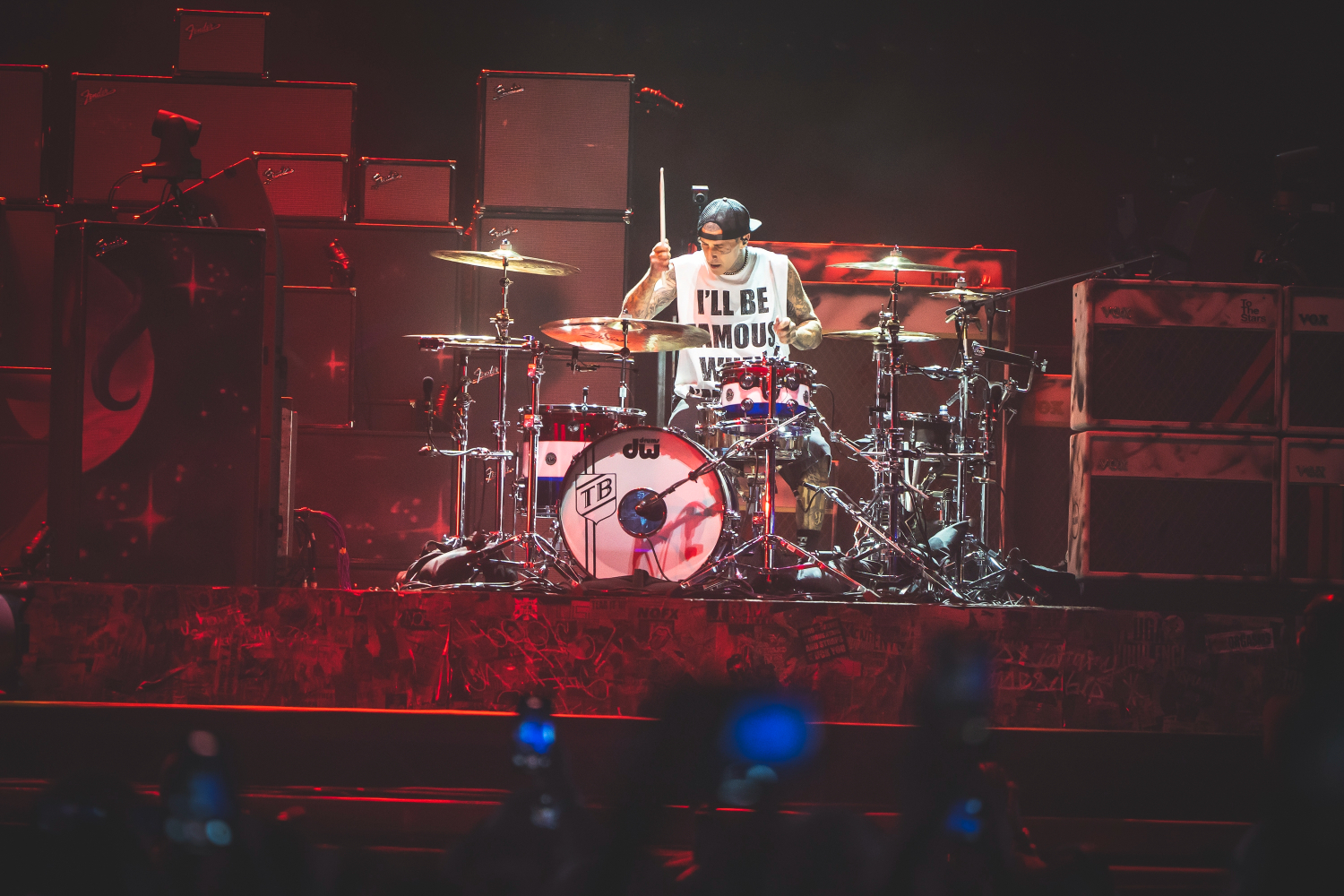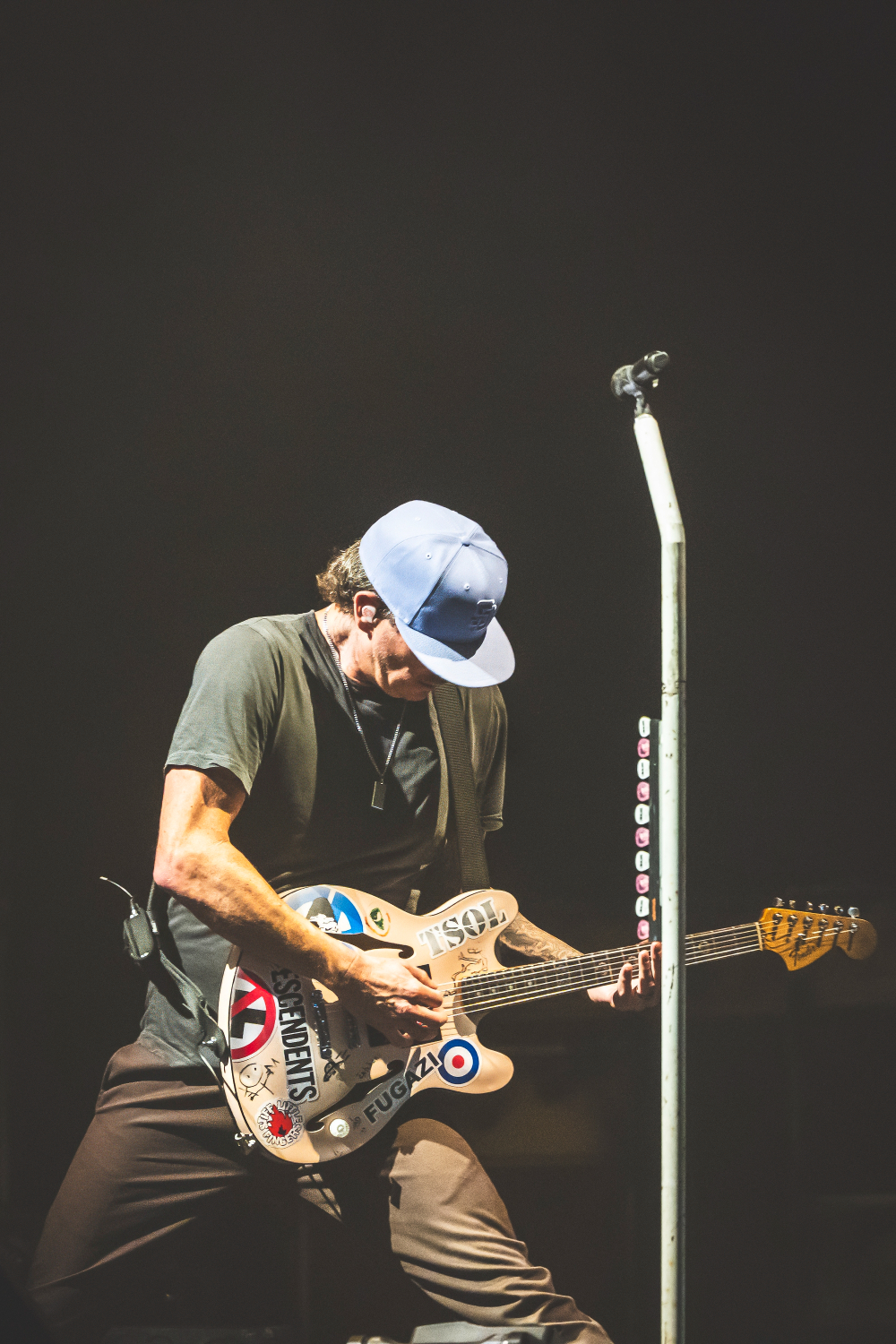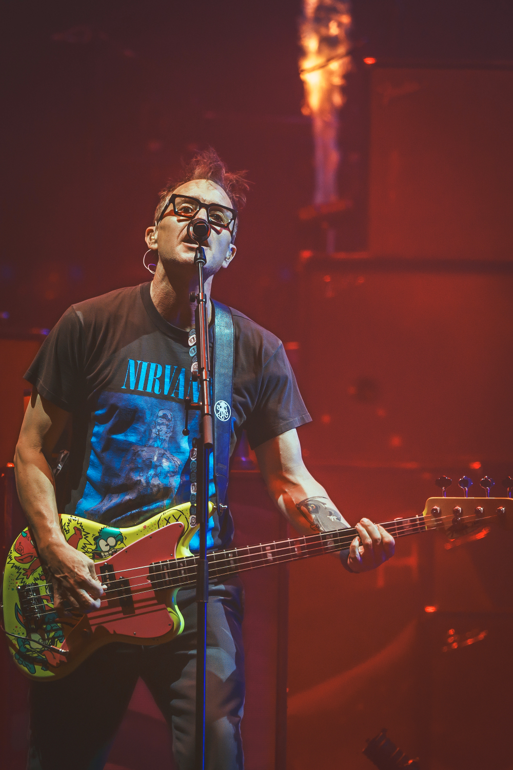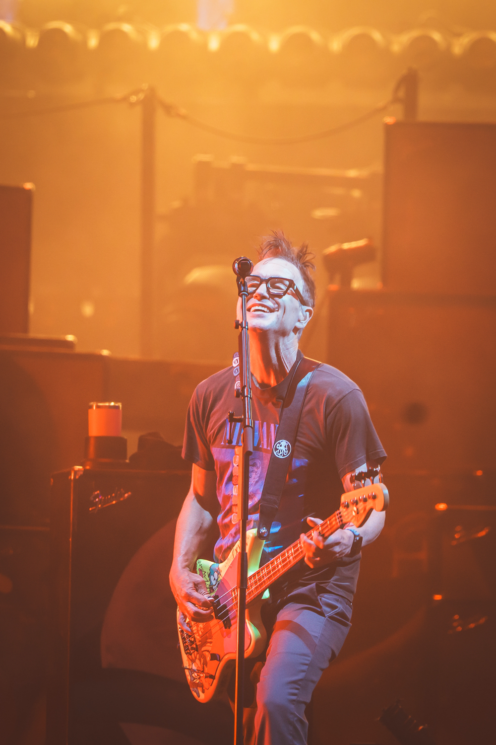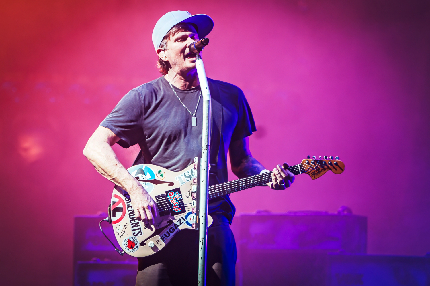 The trio’s fast-paced punk anthems, infectious lyrics, and irrepressible humor ignited the crowd, sending fans jumping, moshing, and screaming along to every chorus. Mark Hoppus and Tom DeLonge bounced across the stage with effortless charisma, while Travis Barker’s unmistakable drumming provided the heartbeat of that signature Blink-182 sound.