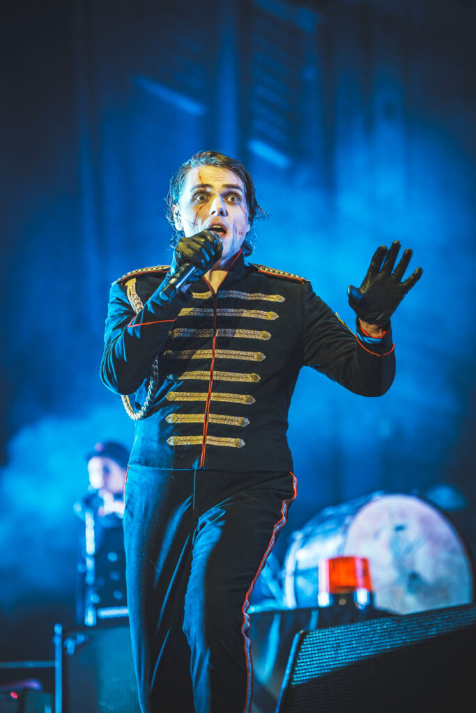 When My Chemical Romance took the stage as Saturday’s headliner, the energy erupted into full-blown theatrical intensity. From the photo pit, the crowd stretched as far as I could see — a sea of people unlike anything I had ever witnessed.