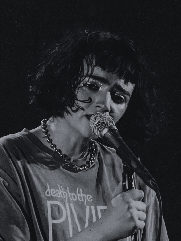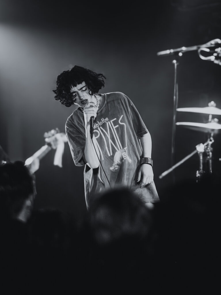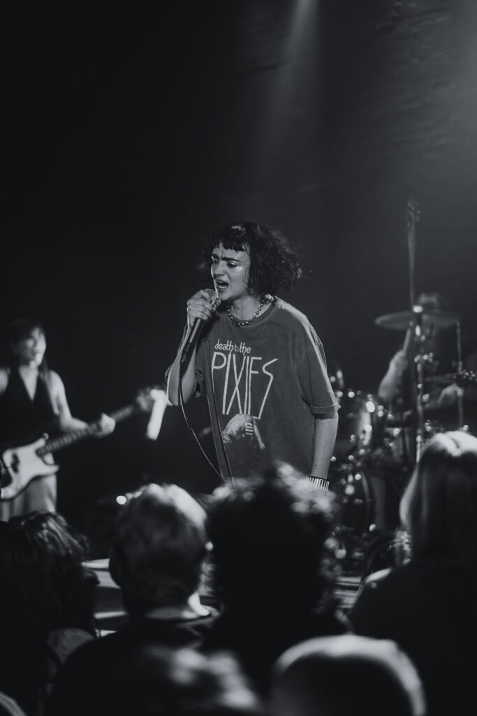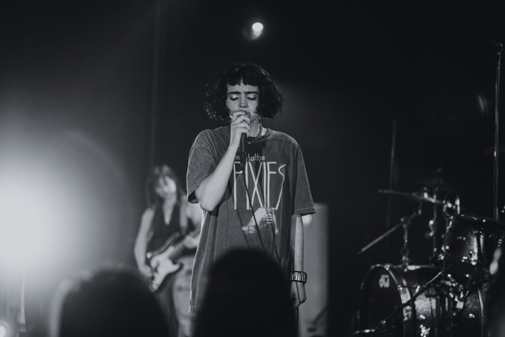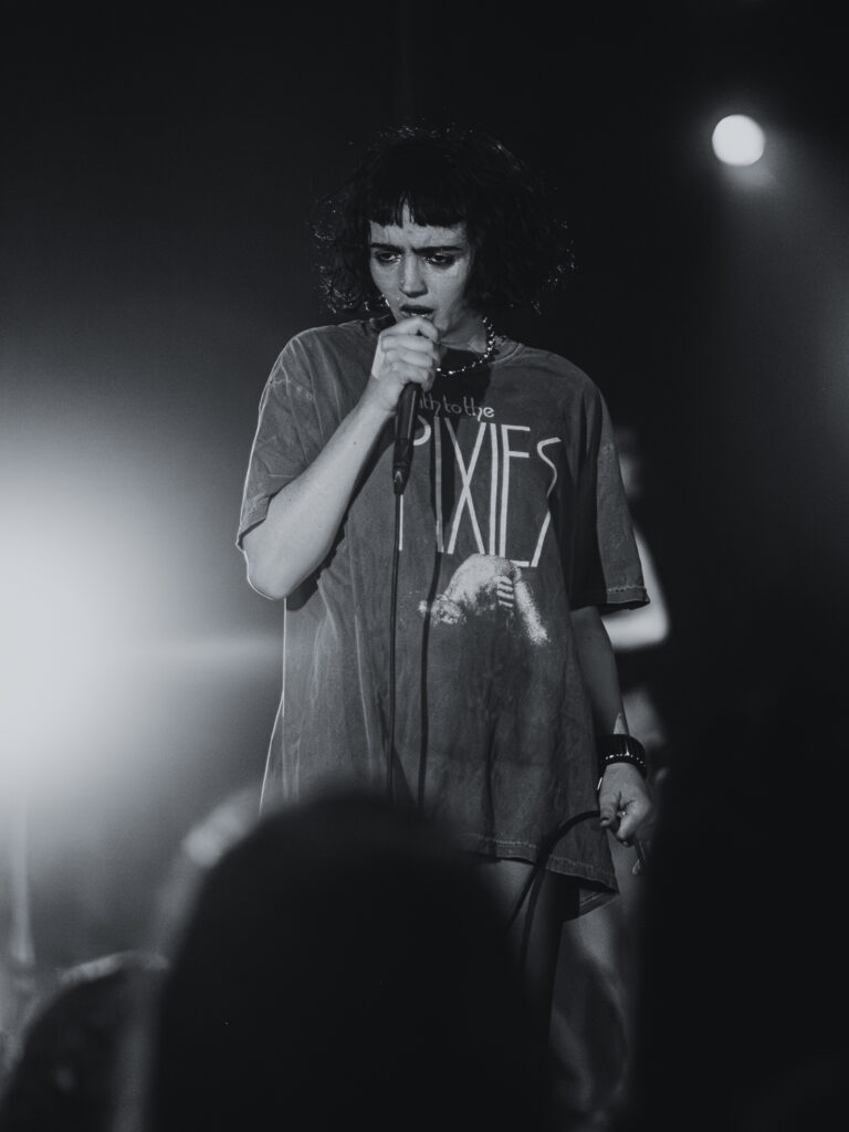 The transition from Telescreens to Sir Chloe felt like leaving a street fight and walking straight into a basement bar. While Jackson Hamm spent the whole opening set basically wrestling with the air, Dana Foote had this much cooler, low-key energy. She was just moving slowly across the stage with a heavy Robert Smith vibe that really pulled you in. Like Telescreens, nothing about her was flashy; she had that signature Winona Ryder/Lydia Deetz look, but traded the ornate dress for an oversized Pixies t-shirt. While her band plays grungy, heavy riffs, her voice really cuts through the noise.