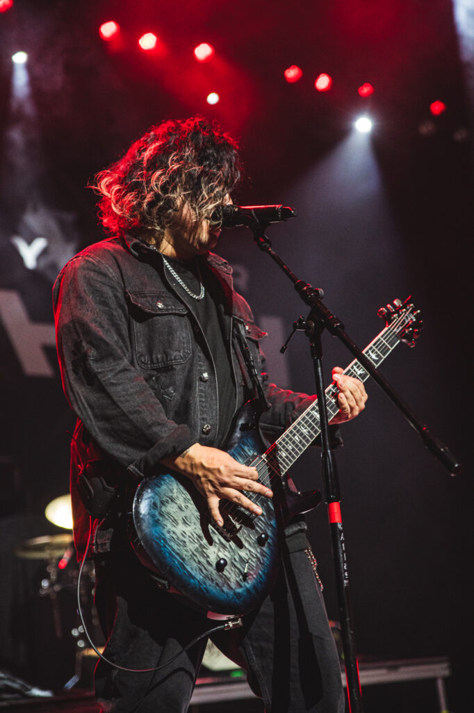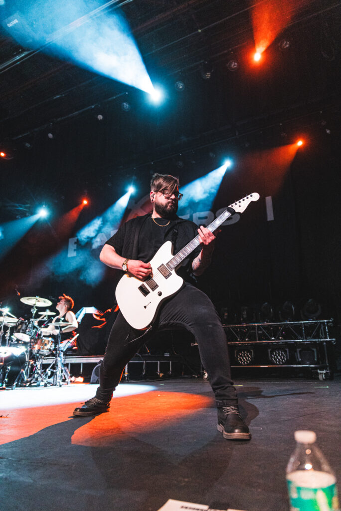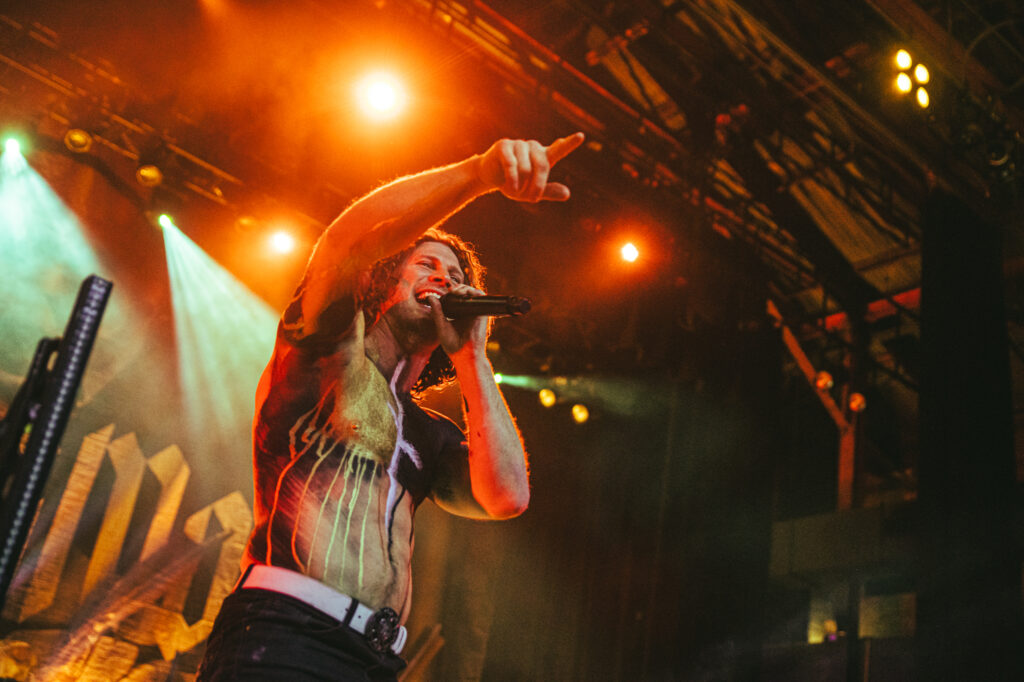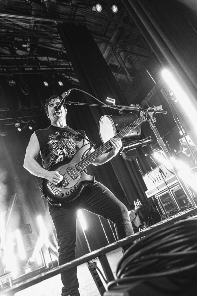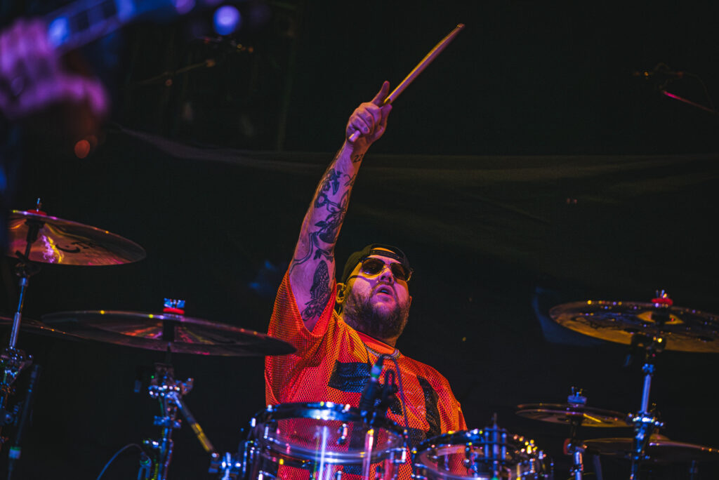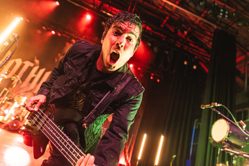 Guitarist Mark Vollelunga and bassist Daniel Oliver were giving their all to the fans with their playing and their stage energy, to pick up any slack that might be laying around. Vollelunga even jumped onto the barricade to shred right in front of the fans’ faces. Spotting a young child rocking out to the music, he made sure to make his way over there, and let the child strum a few on the guitar, and gifting him a guitar pick. While Oliver was a chaotic ball of energy. Gritting, smiling, focused, he was making expressions throughout the show, letting the tunes flow through him as a conductor for the emotion of the music. Drummer Ben Anderson plays with a bombastic sound that booms through the auditorium and gets the mosh pits circling. You can feel every stomp from the moshers in sync with the bass drum hits of Anderson.
