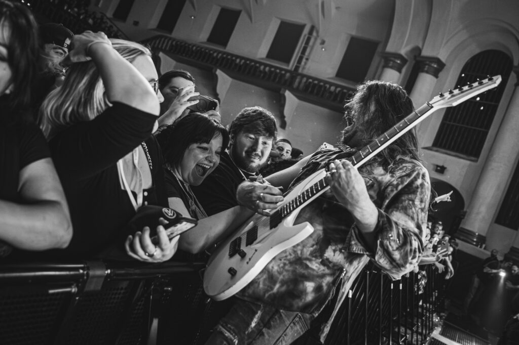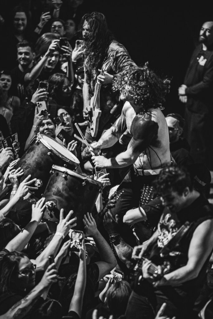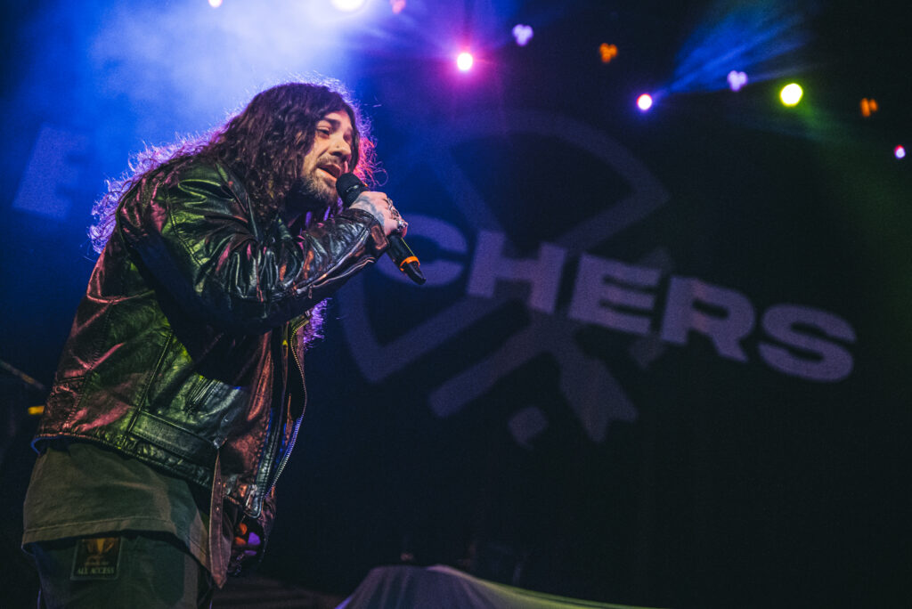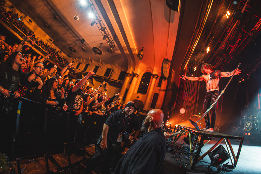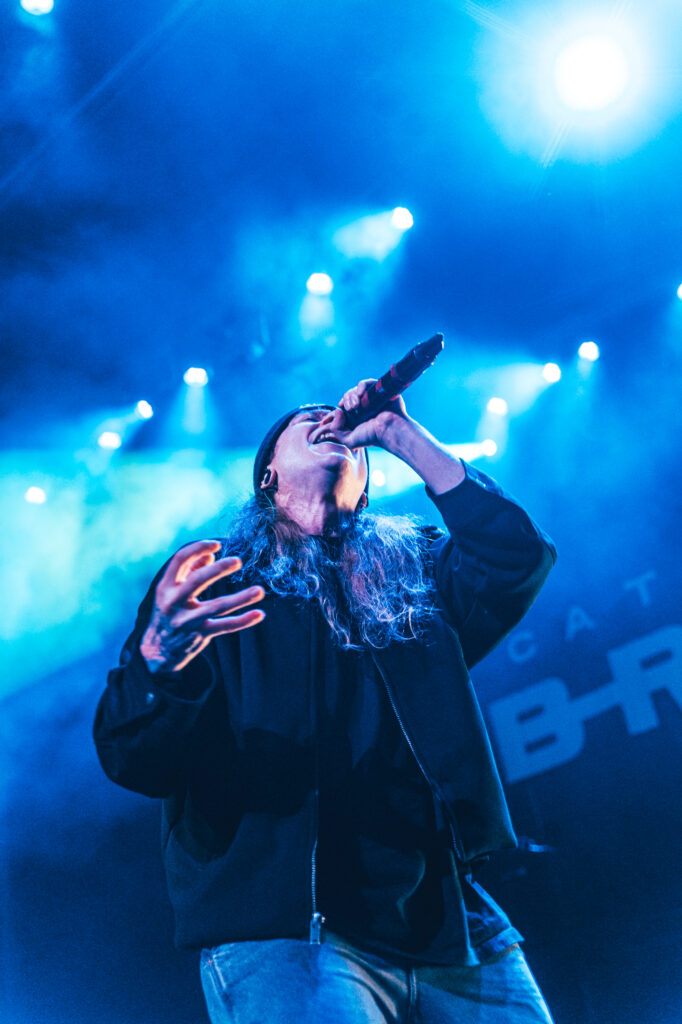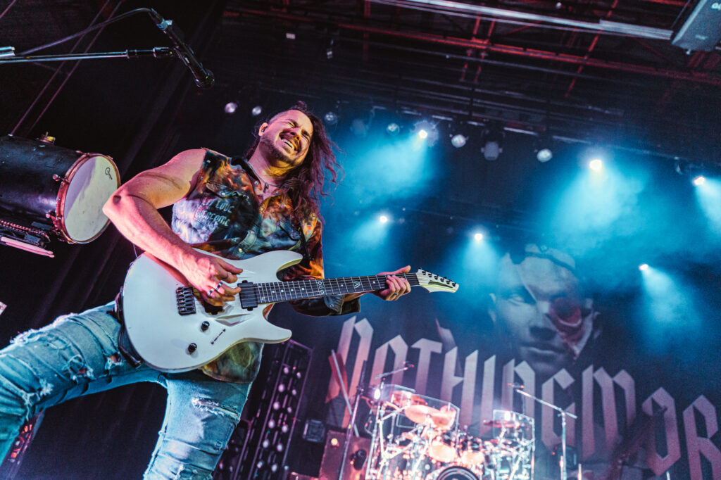 Guitarist Mark Vollelunga and bassist Daniel Oliver were giving their all to the fans with their playing and their stage energy, to pick up any slack that might be laying around. Vollelunga even jumped onto the barricade to shred right in front of the fans’ faces. Spotting a young child rocking out to the music, he made sure to make his way over there, and let the child strum a few on the guitar, and gifting him a guitar pick. While Oliver was a chaotic ball of energy. Gritting, smiling, focused, he was making expressions throughout the show, letting the tunes flow through him as a conductor for the emotion of the music. Drummer Ben Anderson plays with a bombastic sound that booms through the auditorium and gets the mosh pits circling. You can feel every stomp from the moshers in sync with the bass drum hits of Anderson.