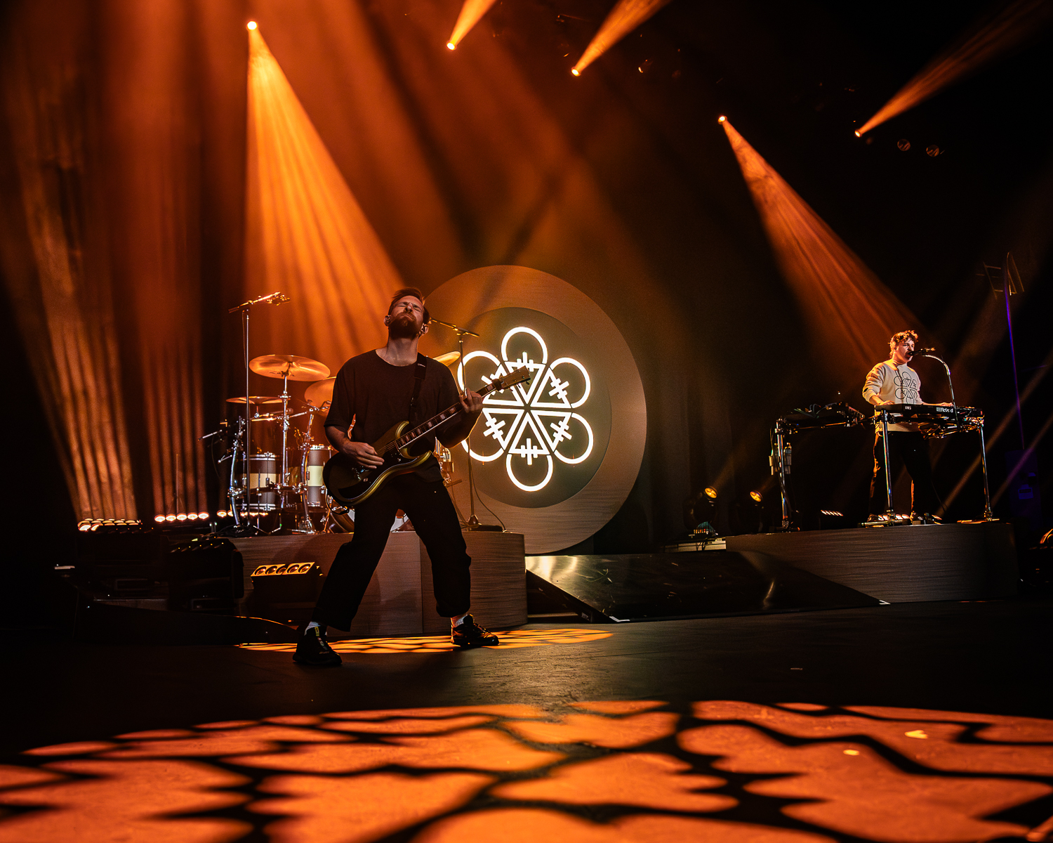 Production-wise, the show kept things sharp without feeling overdone — bursts from CO₂ cannons punched through key moments, while waves of brilliant orange lighting washed over the stage, giving the entire set a warm but aggressive glow that matched the tone of Flowers perfectly.