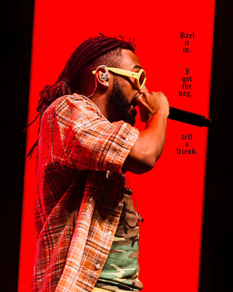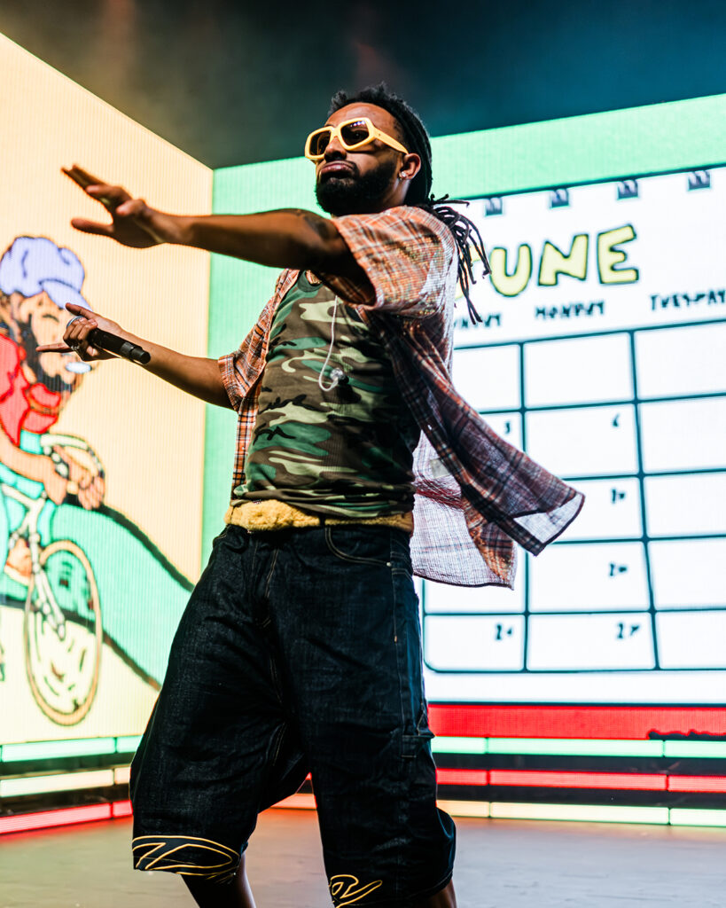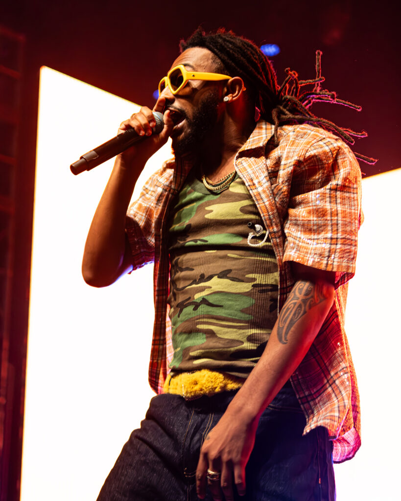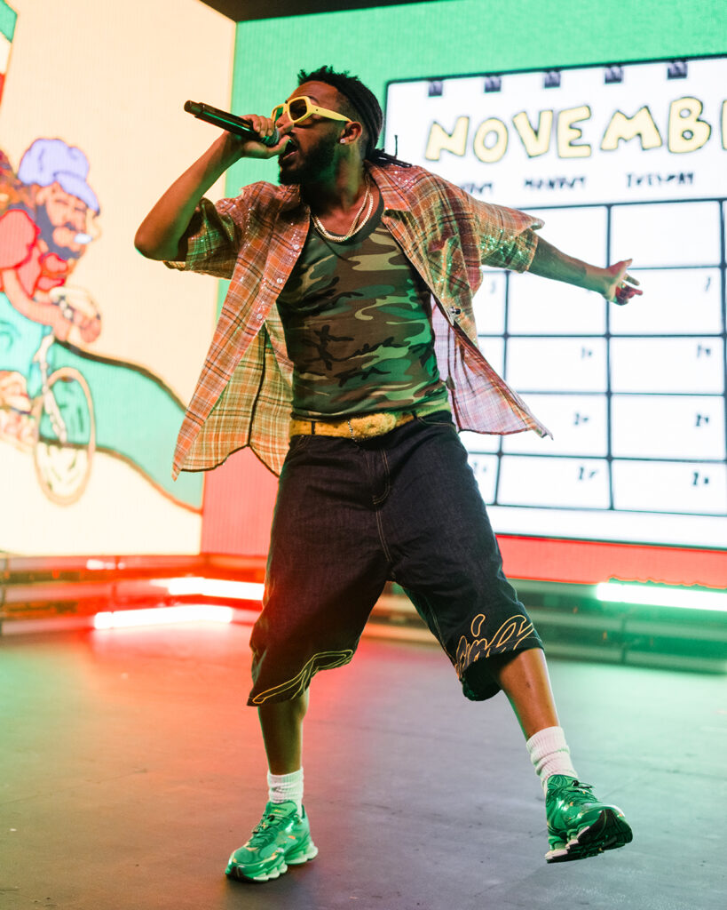 After the electrifying DJ sets, everyone was ready for Aminé to show up, but no one was ready for his stage production. The moment he stepped foot on the stage was the moment his huge three-sided panels turned on with designs anchored to his recent album, 13 Months Of Sunshine. It’s like he is performing inside a box with visualizers for every song, which is just clever. You can tell his Phoenix fans had been waiting for a long time for him to perform in Arizona. The energy, plus them singing to every word, was just glorious to see, with his setlist meticulously curated with tracks like “Spice Girl,” “Yellow,” “Reel It In,” and more.
