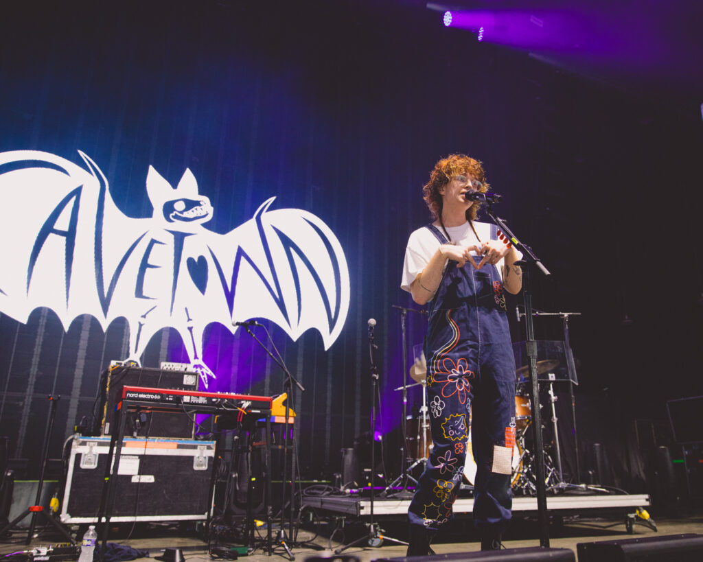 From Somewhere In The Sky to a venue near you, AJR, the trio of brothers Adam, Jack, and Ryan, is best known for their upbeat and catchy pop hits. This summer, they are on a mission to bring their fans on a musical escape into another world. The Somewhere In The Sky Tour is meant to be an otherworldly celebration of music. A world devoid of the badness of reality, and instead filled with joy and love for music. This unique experience includes a list of rotating opening acts. The show in Charlotte, NC, at PNC Music Pavilion, included four opening bands. Starting with 18-year-old singer-songwriter and previous finalist on NBC’s The Voice, Ryley Tate Wilson. Leading up to Valley, a Canadian indie pop band, and then into Cavetown, known for their bedroom pop and indie rock music. And finally ending with Goth Babe, the American indie rock solo project of singer-songwriter Griff Washburn. This wide range of acts created an electric lineup of artists that brought their style and flair to the stage.
