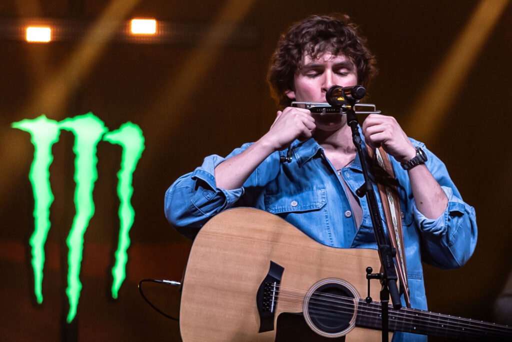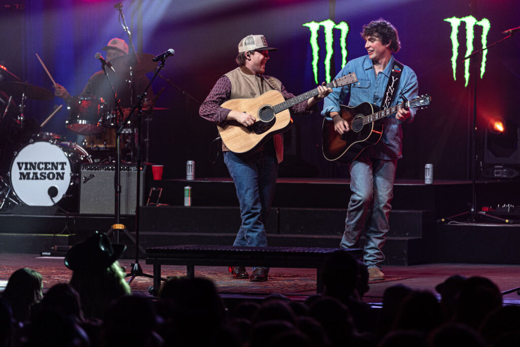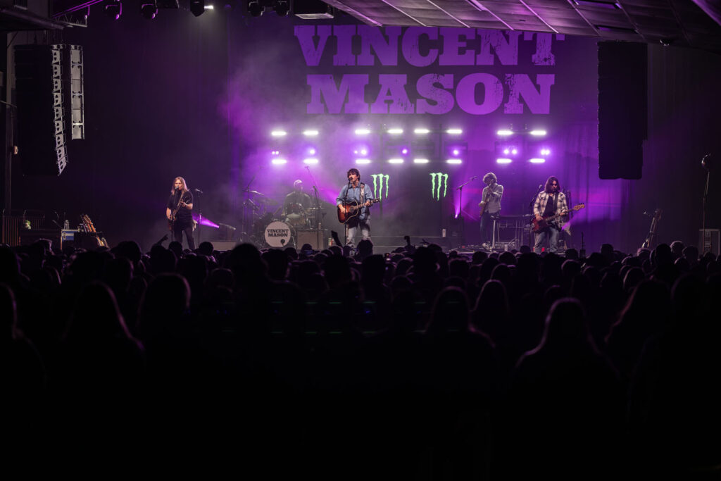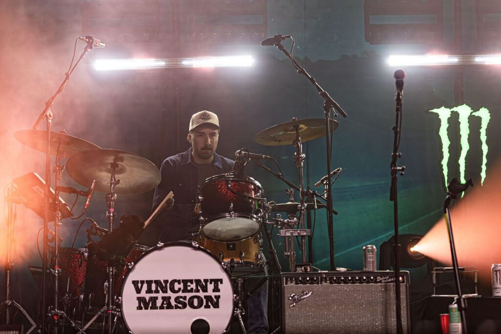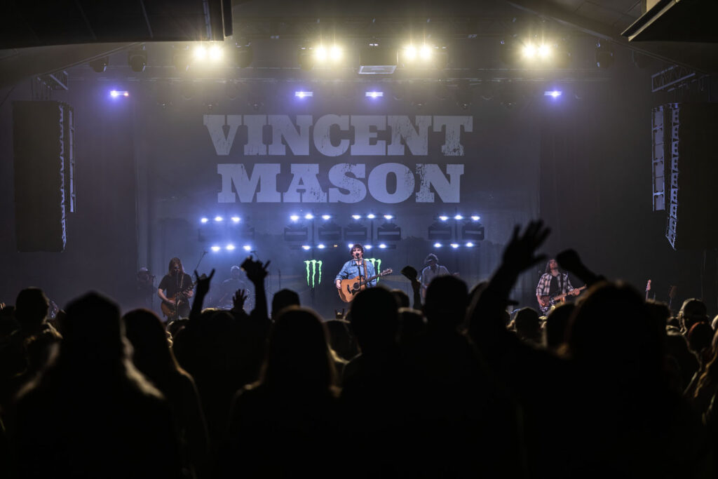 Vincent Mason’s There I Go tour is part of the 2026 Monster Energy Outbreak Tour, which showcases the biggest new names in music each year. Not so subliminally advertised, the bright green Monster Energy logo adorned the backdrop of the stage, as well as a few Monster Energy Ultra cans strategically placed atop the risers on stage.
