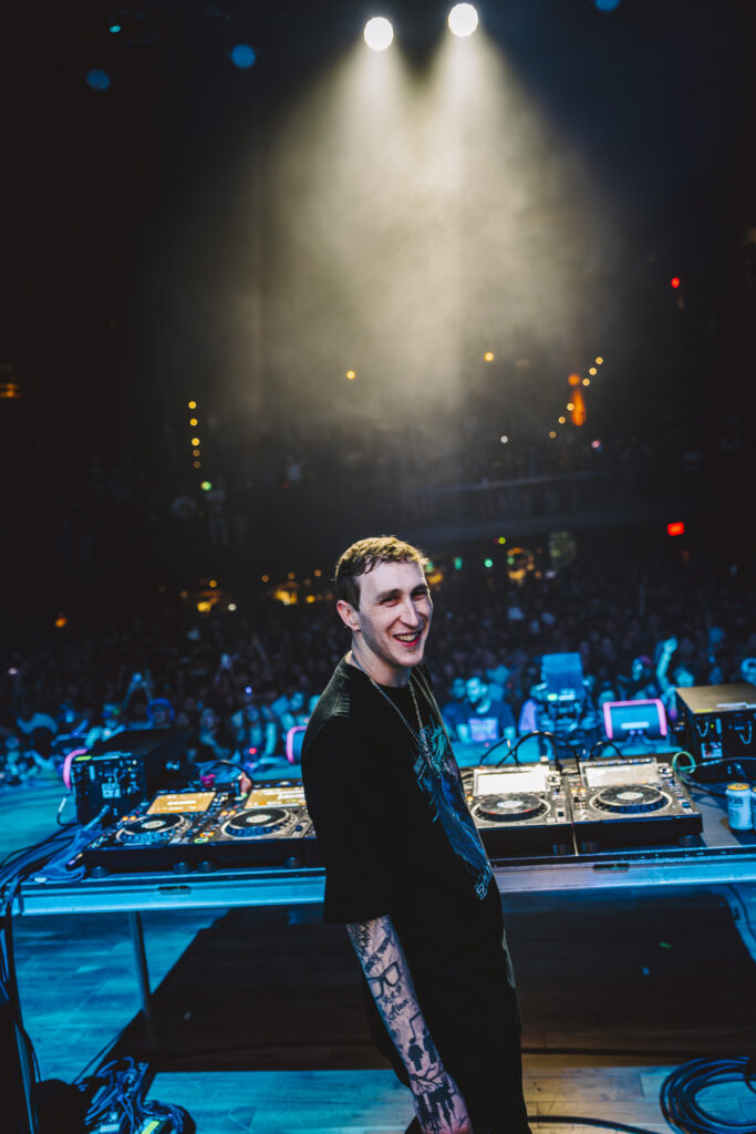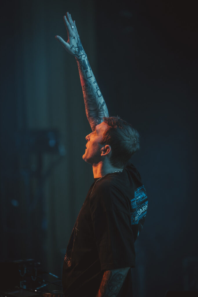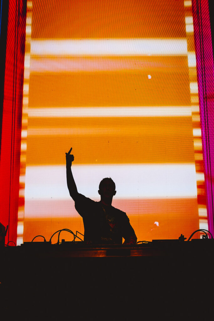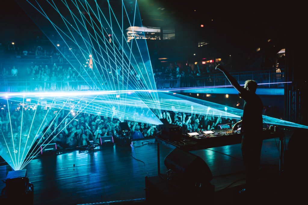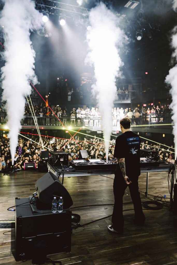 The lights went dark on stage and the energy in the crowd immediately spiked, the roar was deafening and it felt as if the whole building was moving. A silhouette made its way from stage left to the table positioned at the center of the stage. William Black didn’t waste any time immediately turning the intensity up from the start. Lasers shot from the stage, moving in sync with the tempo of the beat while CO2 bursts filled the downstage edge, creating a mesmerizing visual atmosphere. William would surge the energy high and then pull it back down, emphasizing the feeling of riding a musical roller coaster. Interacting with his fans, he moved with the beat right alongside them, and you could see how much he enjoys what he does, bringing joy and connection through music and creating a space where everyone could have the time of their lives.